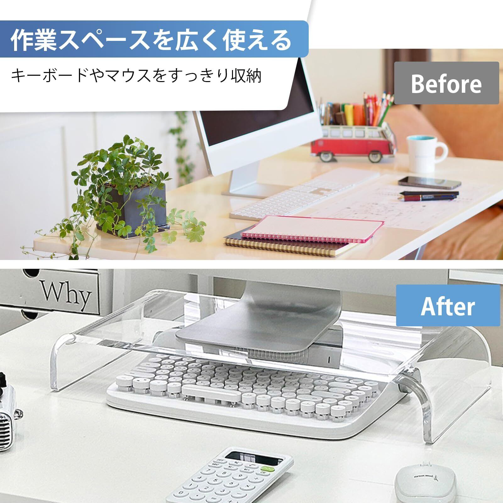 【省スペース】モニター台の下に自然とできるスペースを有効活用し、キーボードやマウスを収納するには役に立ちます。モニタースタンドとしてだけでなく、プリンタースタンド、iMacスタンド、ノートパソコンスタンド、TVスタンドとしてもご利用いただけます。