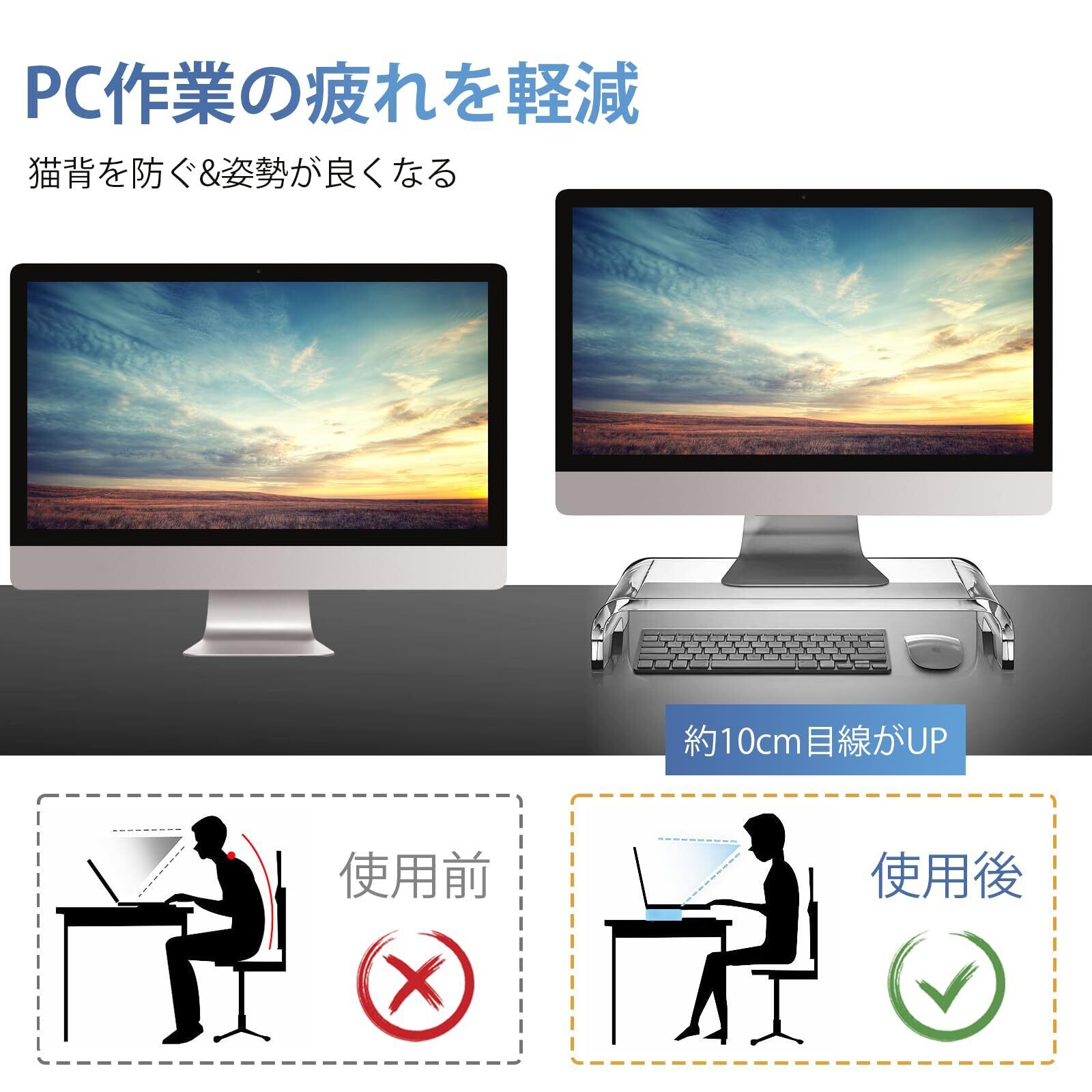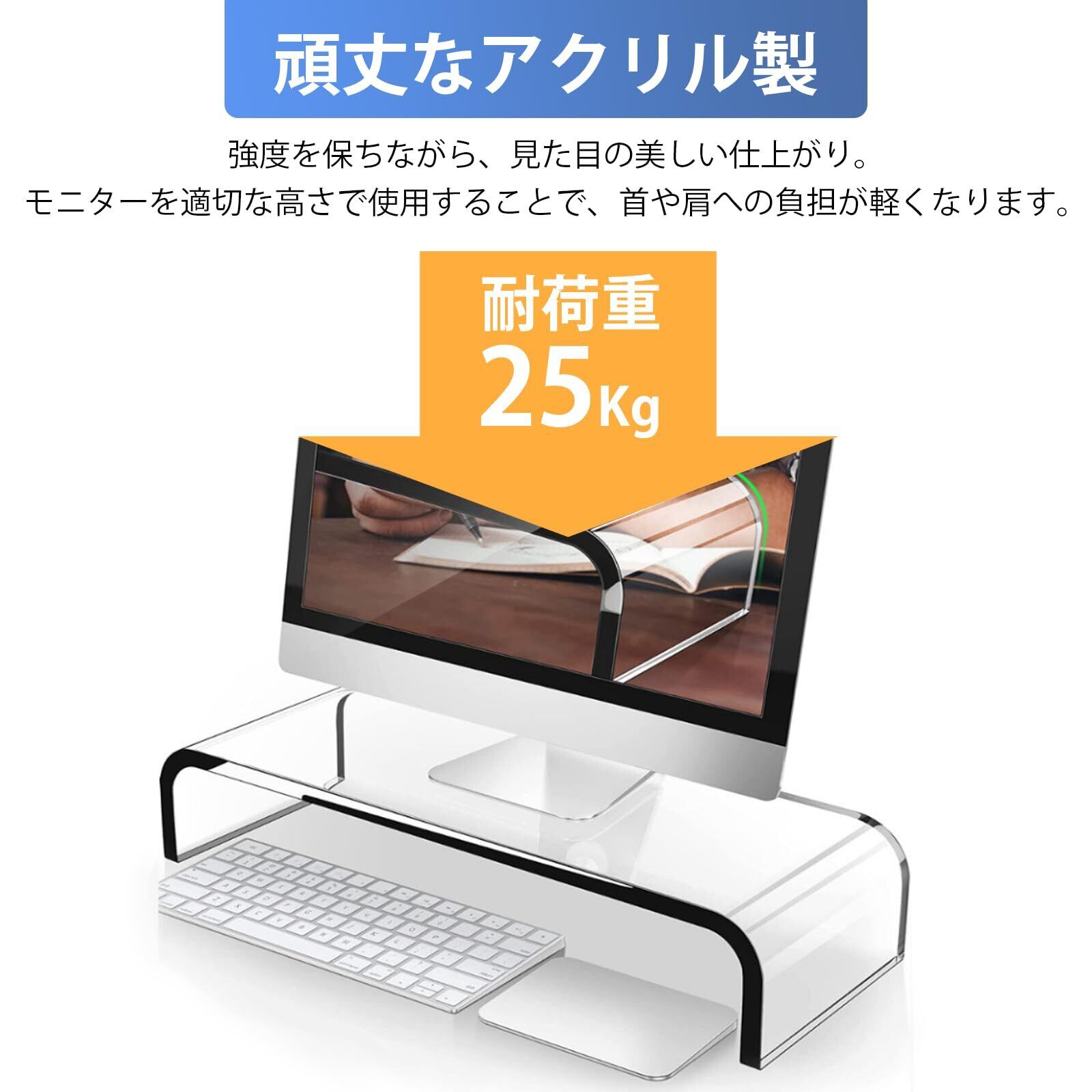 モニター台 アクリル製 モニタースタンド 透明 机上台 パソコンスタンド PCスタンド キーボード収納 組み立て不要 省スペース 姿勢改善 安定性 耐荷重25KG
