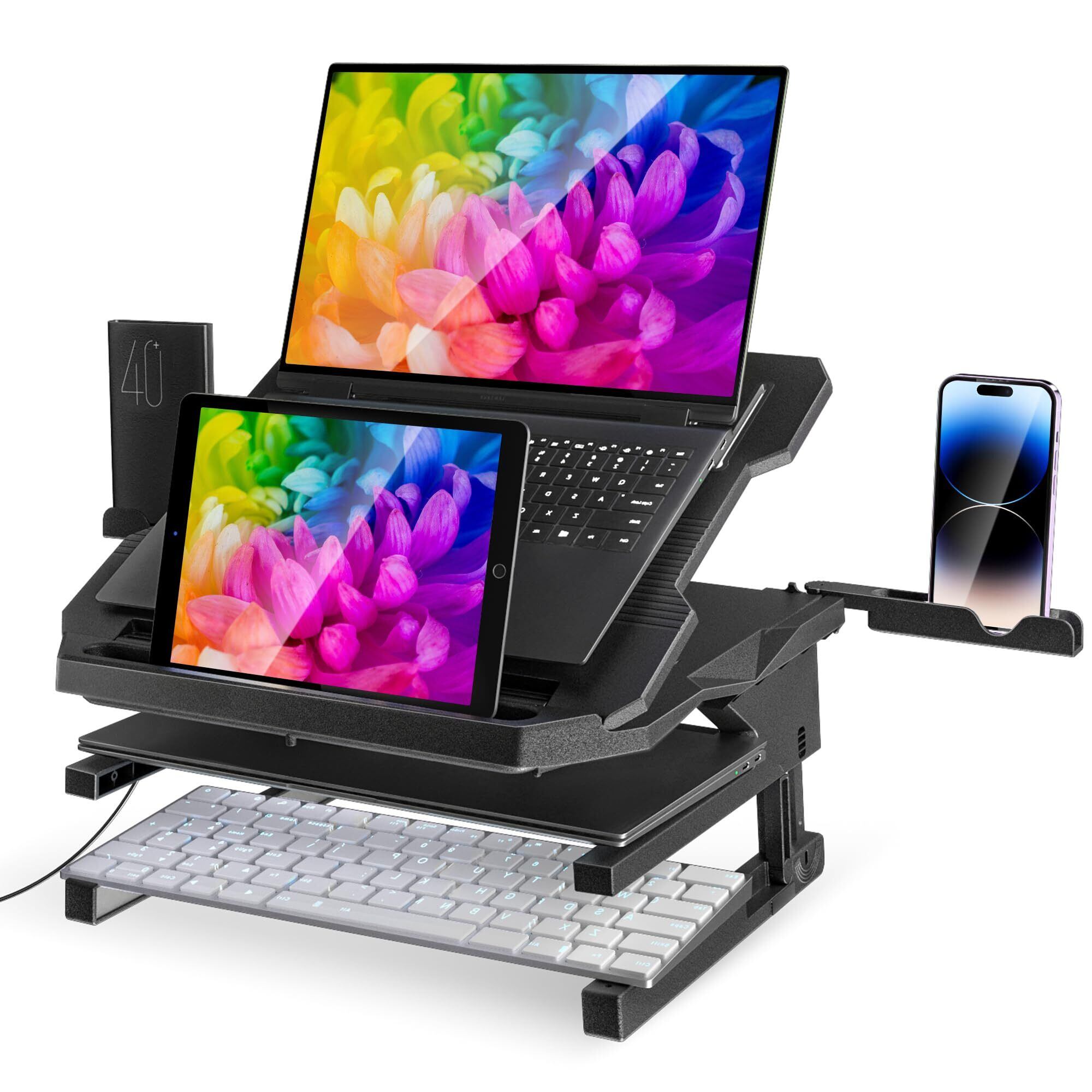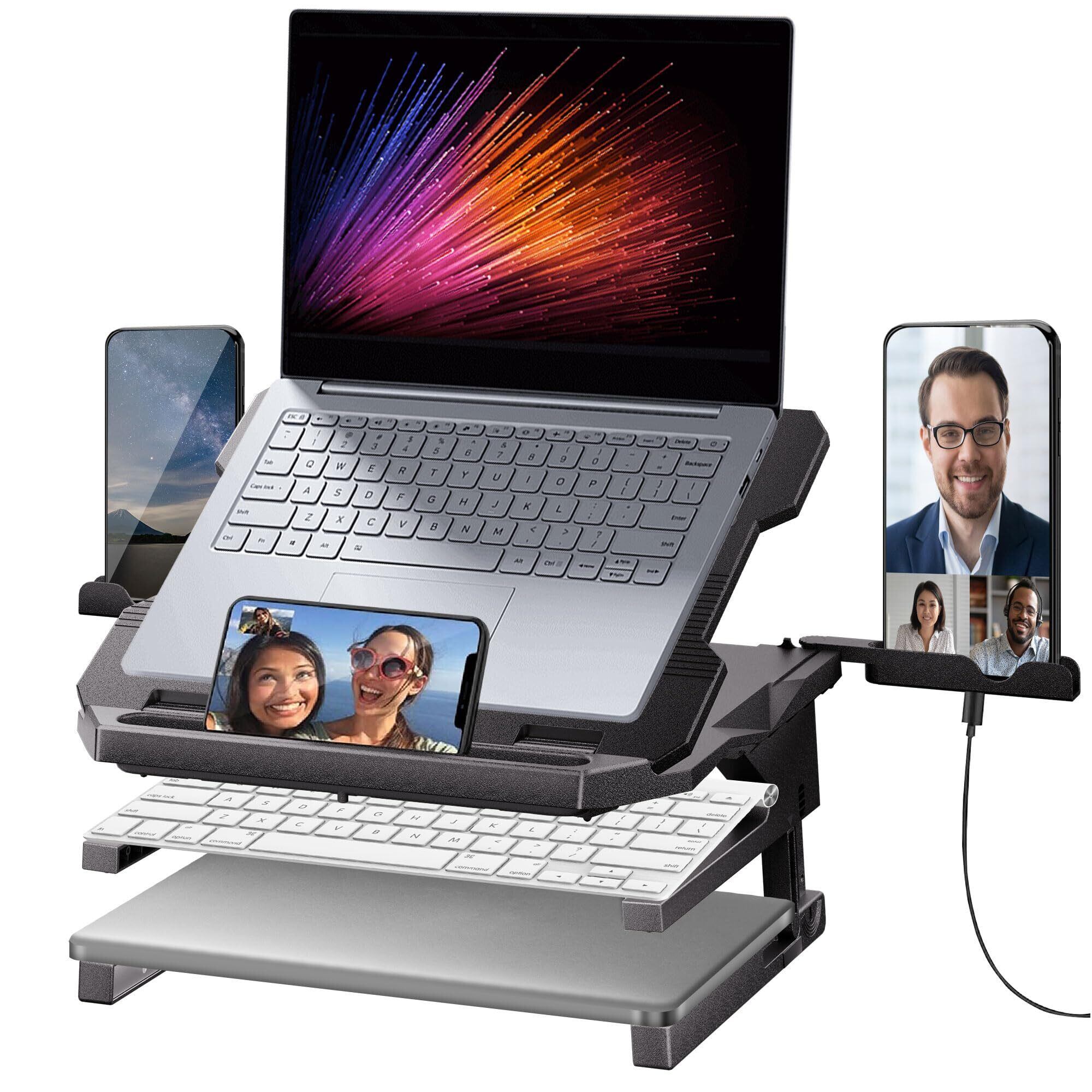 【10~17インチまでノートパソコンと携帯電話に適用】このノートパソコンスタンドは長さと幅が12.2インチで、10~17インチのタブレットデバイス向けに設計されています。延長された電話スタンドは、携帯電話をスタンドに置いて振動することなく作業でき、安定性にも優れています。