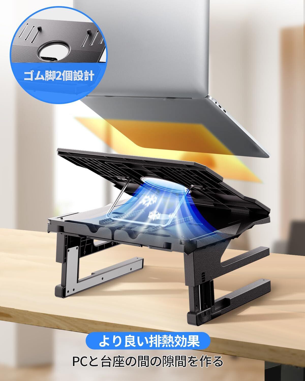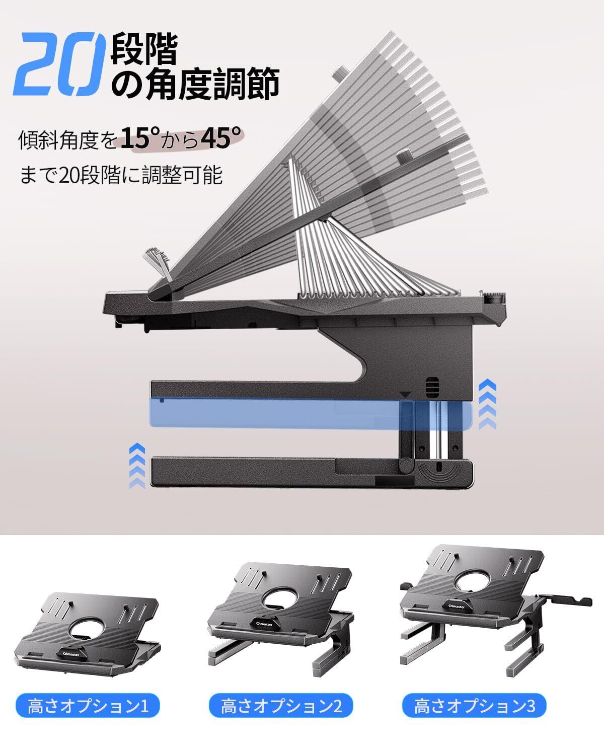【3段階高度調整可能&20個の角度調整可能】ノートパソコンのエレベータの高さは3つあります。ブラケットなし、ブラケット1つ、ブラケット2つ。3つの高さオプションがリスト画像セクションに表示されます。2つのスタンドを使用すると、ノートパソコンは10インチまで上昇することができます。リスト画像セクションには、適切な角度を選択できるようにするための20個の角度オプションが表示されています。このスタンドを使って、必要に応じて適切な高さと角度を選ぶことができます。