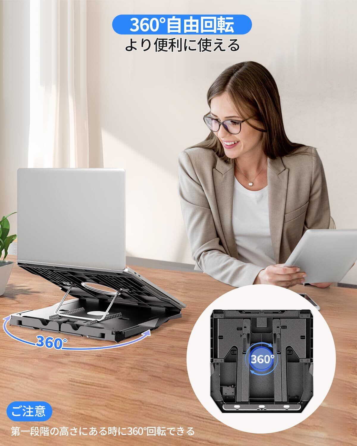 Vitahop ノートパソコンスタンド タブレットスタンド PCスタンド ラップトップ 卓上 ipad 回転台 360°回転 高さ調整可能 折りたたみ式 滑り止め付き 安定性 収納可能 超軽量 ポータブルタイプ タブレット&スマホ両用 (10~17インチ)適格請求書発行可