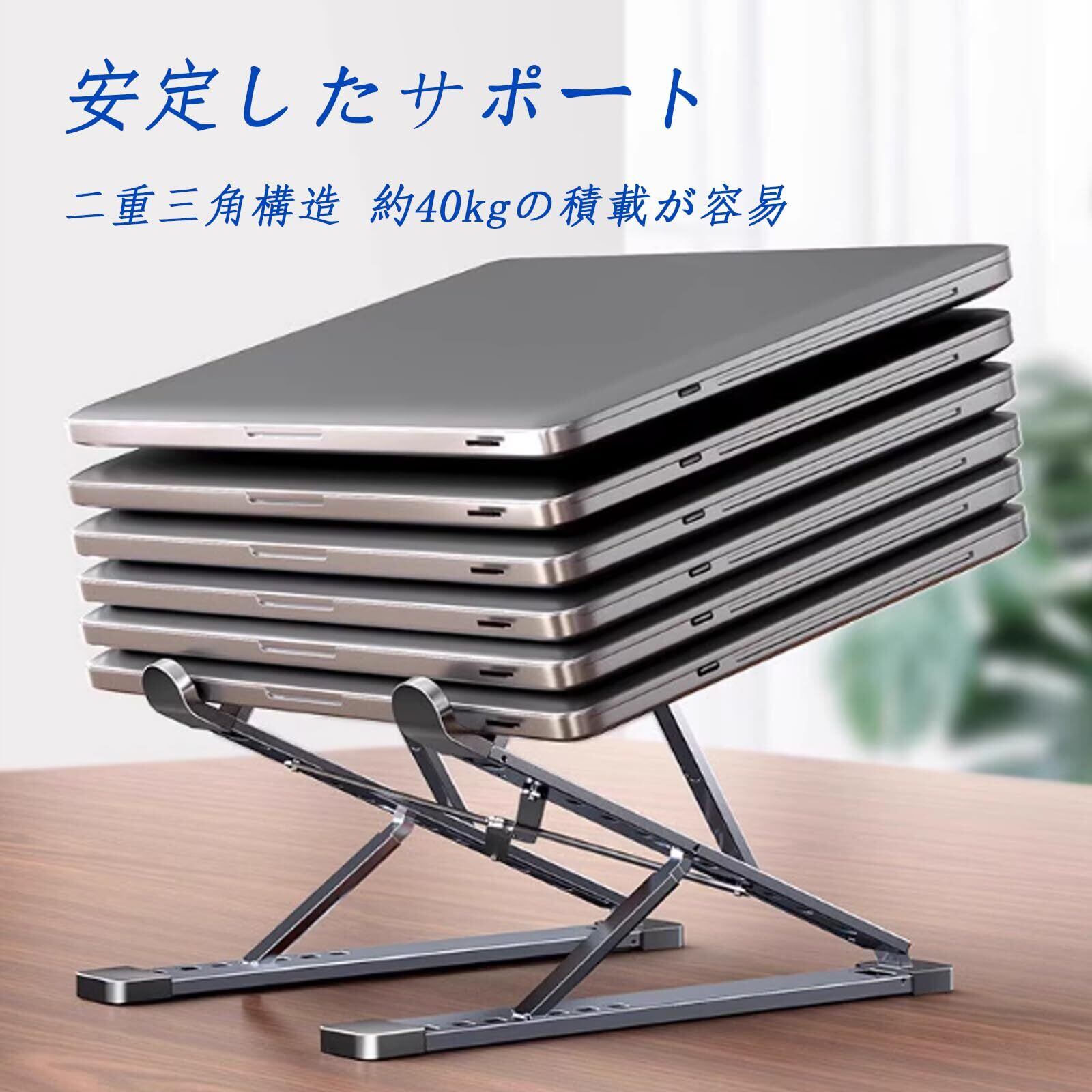 【安定で長持ちする放熱効果抜群】このパソコンスタンドはアルミニウム合金素材を採用しており、手触りが涼しい、放熱しやすい、特殊中空デザインは放熱面積を最大限に拡大し、放熱効果抜群です。 高強度アルミニウム合金素材構造がより安定し、あなたのデバイスを安全で安定させます。 オフィス、カフェ、さらには電車や飛行機でも使えます。