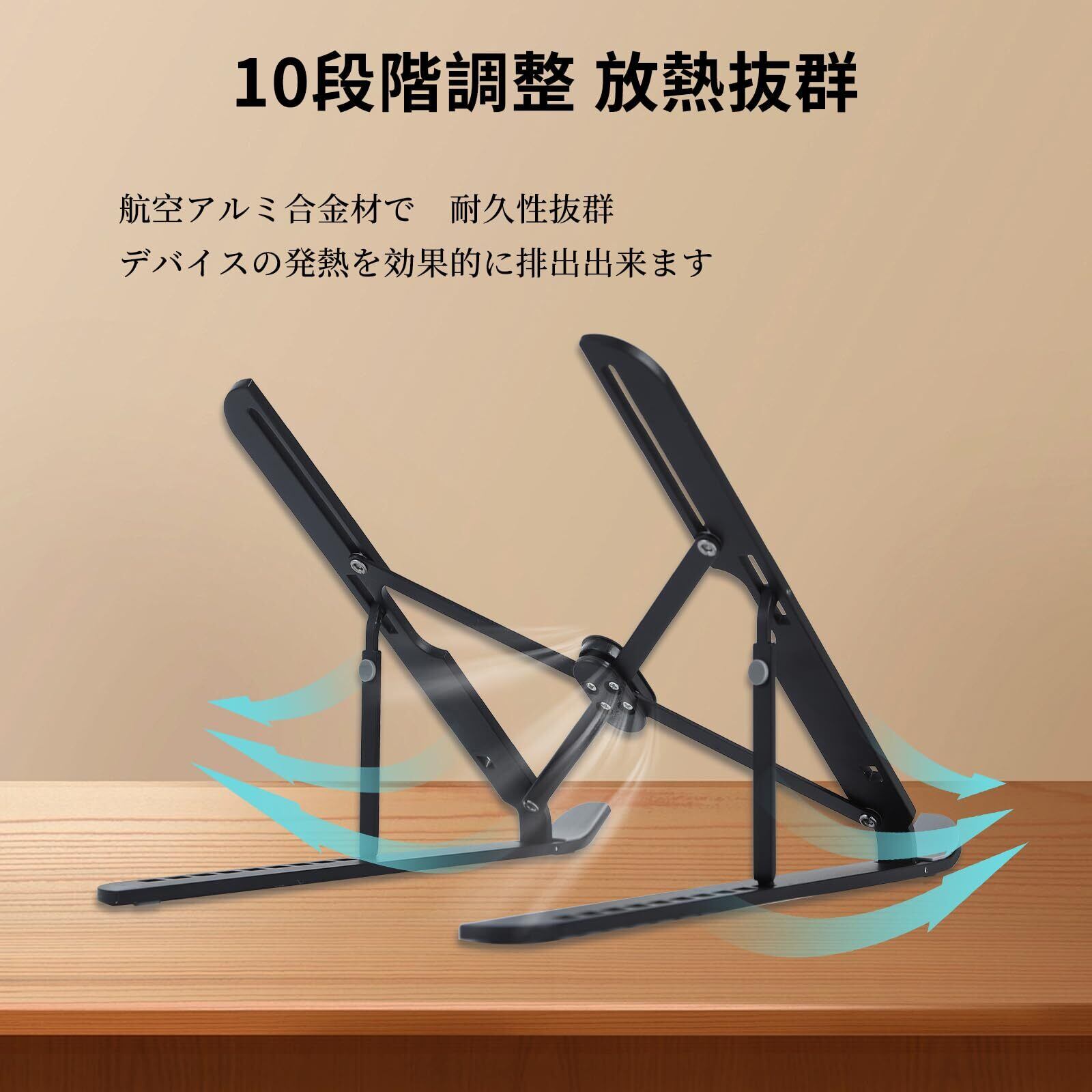 ノートパソコンスタンド PCスタンド【2024進化改良】10段階高さ調節 Kingtech パソコンスタンド 航空用アルミ合金 黒色 滑り止め 折りたたみ式 ノートpc スタンド タブレットスタンドラップトップスタンド 軽量 強固 卓上 冷却 放熱性 コンパクト 持ち運び便利 17インチまで対応可能 PC/MacBook/ラップトップ/iPad/タブレット (金属)