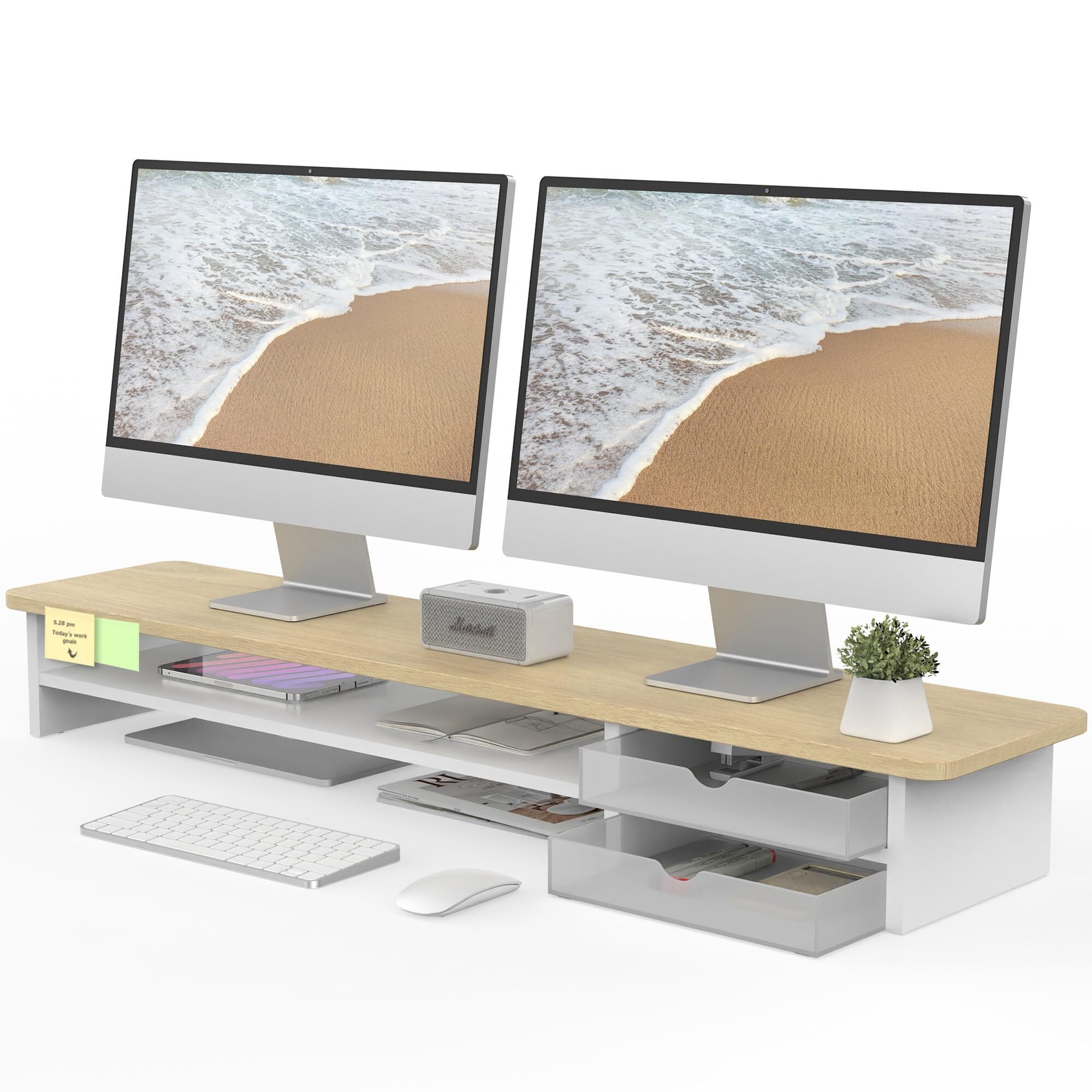 Fenge モニター台 卓上 モニタースタンド パソコン台 机上台 2段 108cm 引き出し 木製 アクリル製 白 pcモニター台 ディスプレイ台 机上ラック 卓上収納 pc台 G04K2103C(オーク&白)