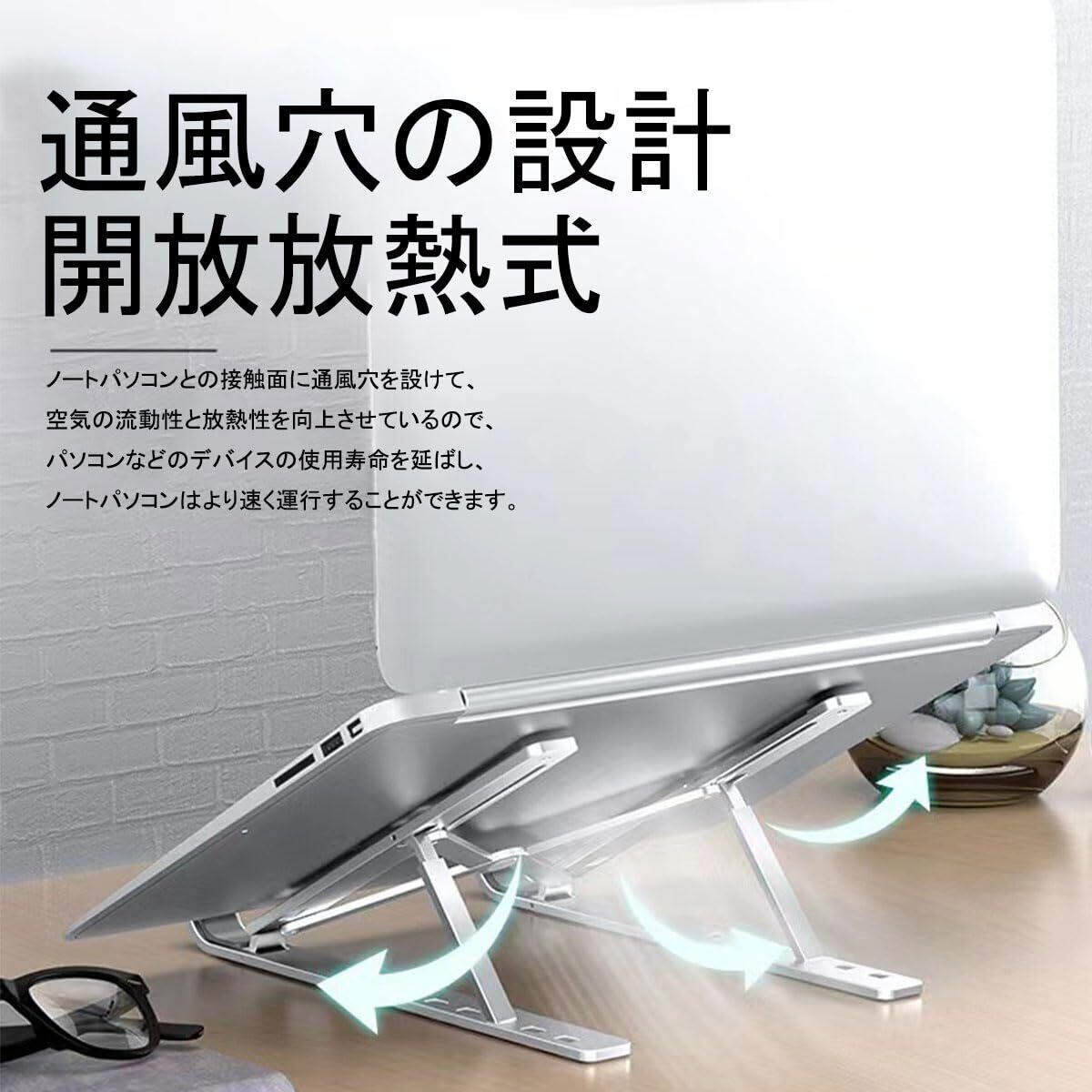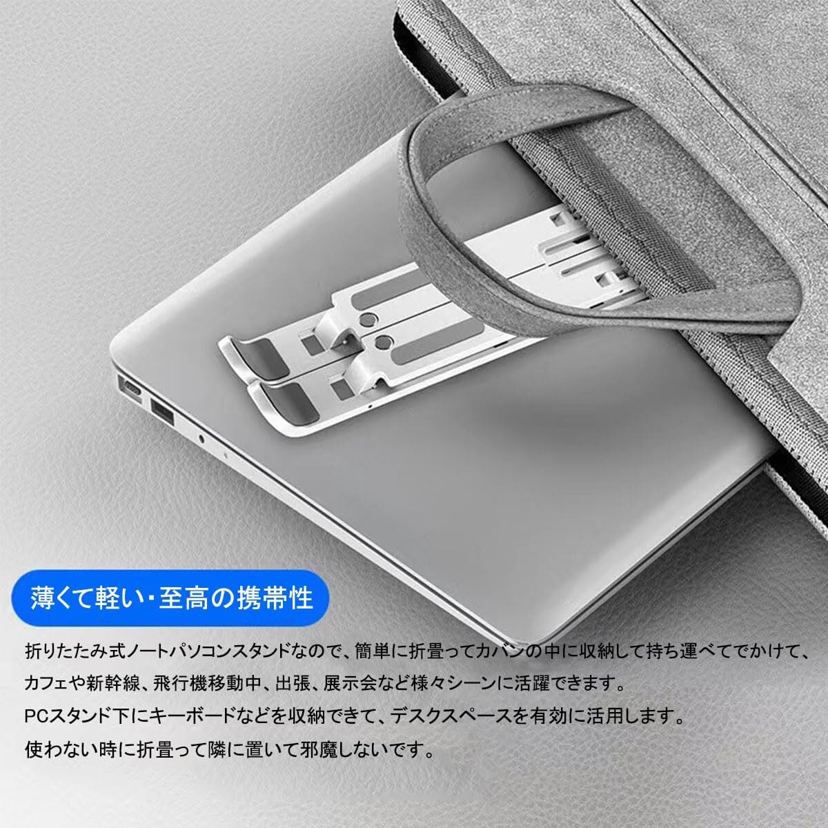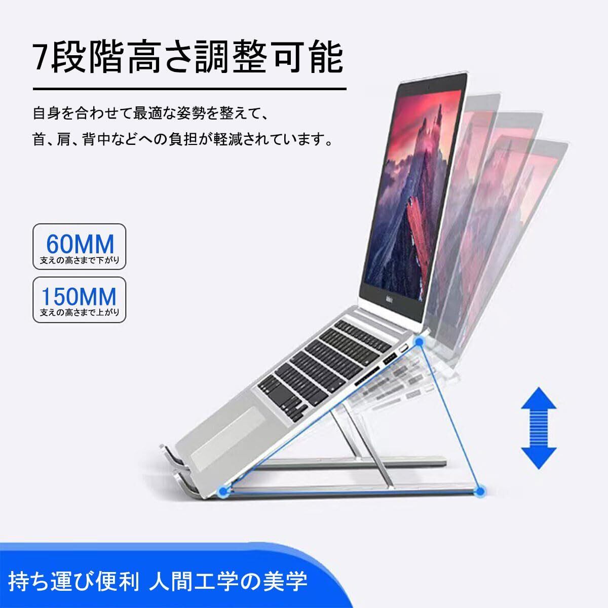 ノートパソコン スタンド 超軽量 PCスタンド改良 パソコンスタンド 折り畳み 7段階高さ調節可能 人間工学設計 姿勢改善 腰痛/猫背解消 pc スタンド 持ち運び 卓上 滑り止め アルミ合金製 放熱性 laptop iPad MacBook mac ラップトップ スタンド 12~18インチ対応