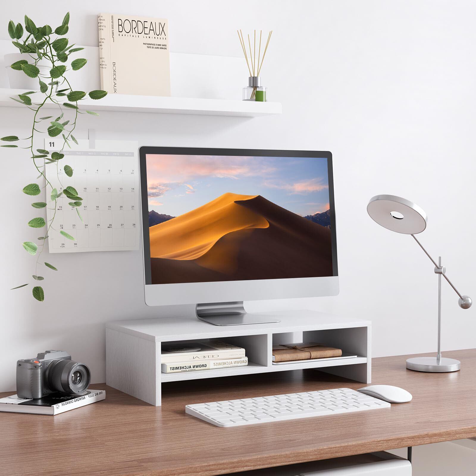 【省スペース&多機能】モニター台は様々な場合に大活躍!本棚やプリンター台/fax台などとしても便利です。キーボードやマウスを収納するには役に立ちます。多機能な机上台で、オフィスや研究室やリビングルームなどの場合もオススメです。画像や鉢植えなどお好きなものを飾れば、自分だけの癒し空間がつくれます。疲れが吹き飛んで作業率もアップさせる。