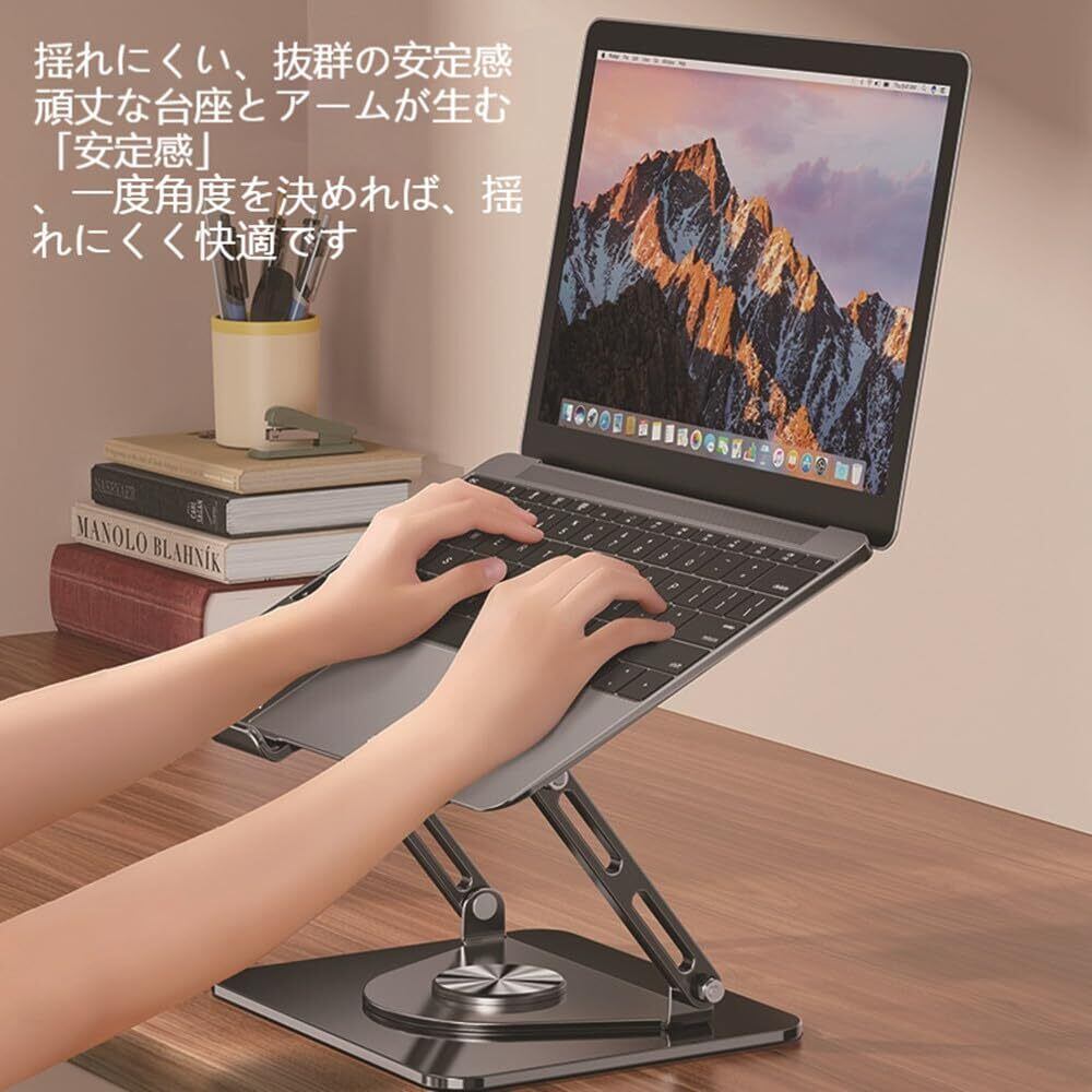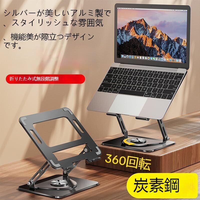 【新春セール】RETZLA ノートPC スタンド回転 360° 高度・角度調節可能 折りたたみ式 ノートパソコンスタンド人間工学 安定 放熱対策17インチまでのノートパソコンスタンド 軽量 コンパクトに対応 pcスタンド黒 腰痛/猫背肩こり姿勢改善 在宅仕事 ZOOM会議 キーボードスタンド 机 省スペース アルミ製軽量 laptop stand (ブラック)