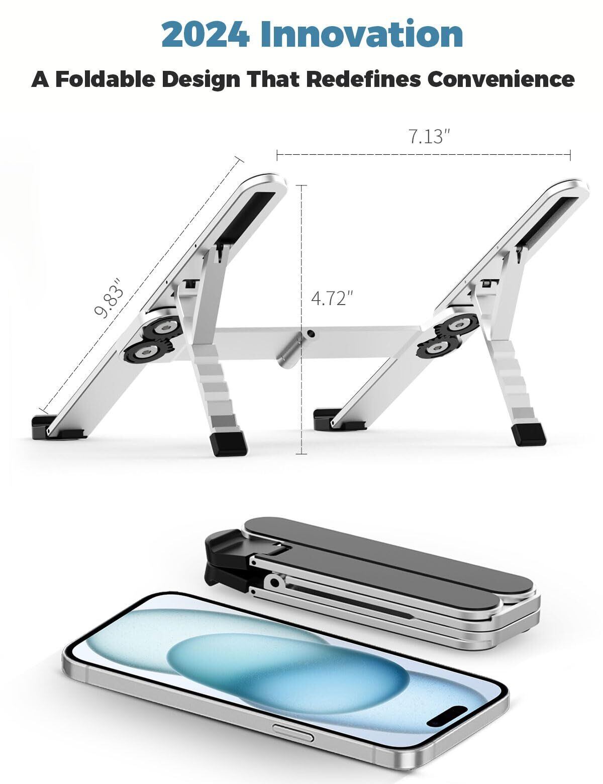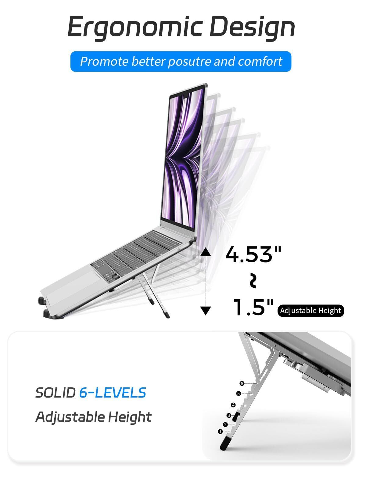 ZenRich 【極軽量】ノートパソコンスタンド PCスタンド タブレットスタンド 折りたたみ式 laptop stand 人間工学設計 腰痛 猫背 姿勢改善 6段高さ/角度調整可能 滑り止め 持ち運び PC/MacBook/ラップトップ/iPad/タブレットなどに対応