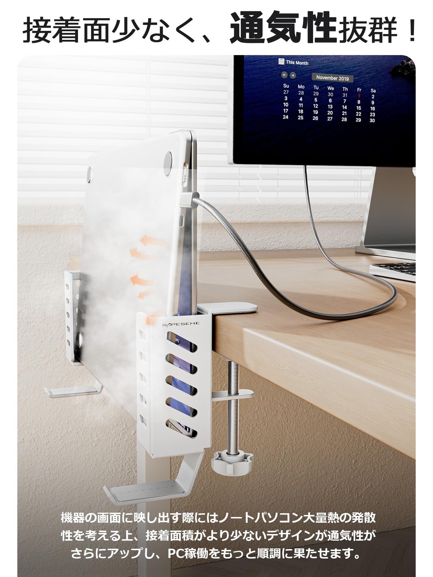 クランプ式穴あけ不要、クリップの内側に滑り止めパッド付き、効果的にデスクを保護します。デスクラックの内側にシリコンパッドもあります。ノートPC・ラップトップ・タブレット傷つけることを全面的に防止します。