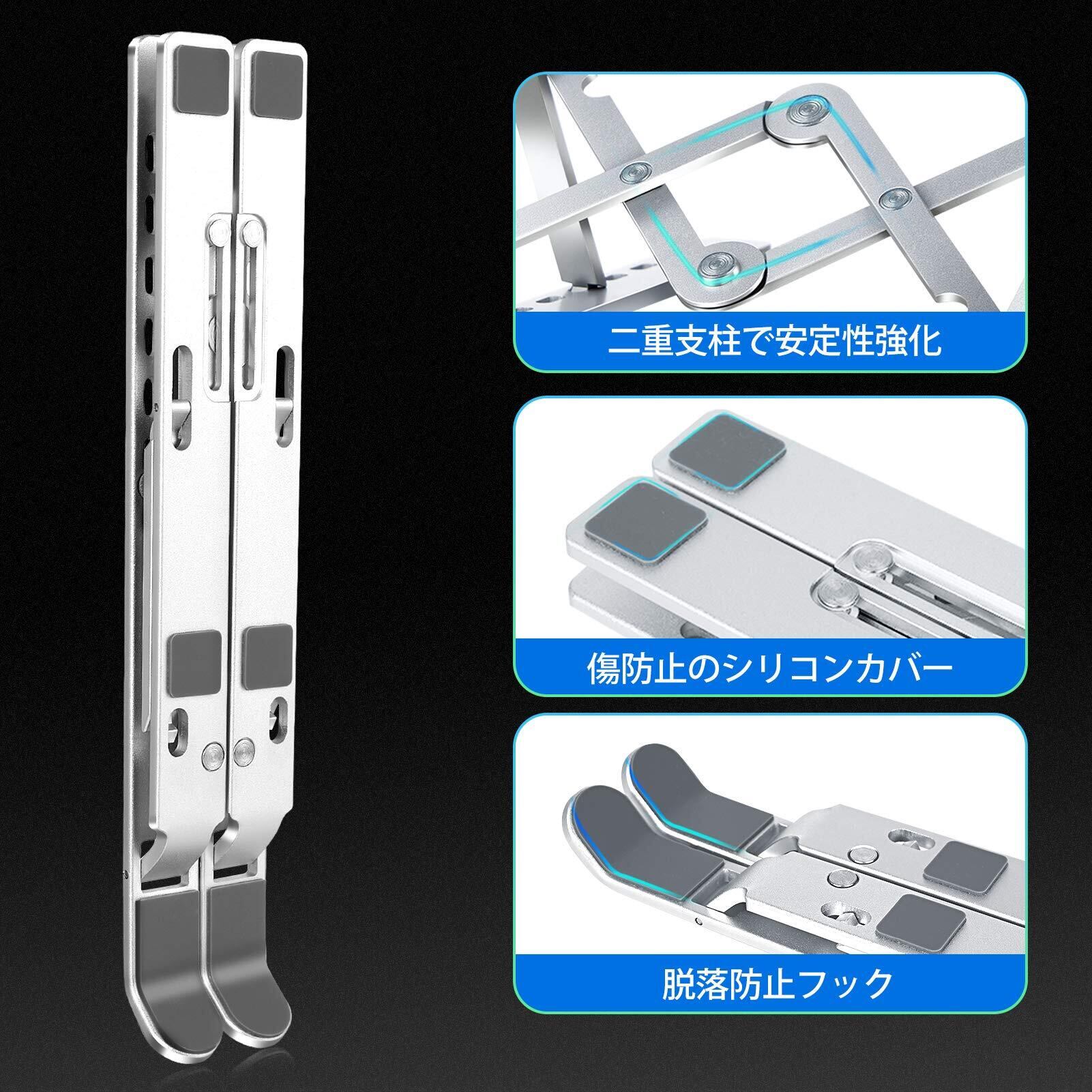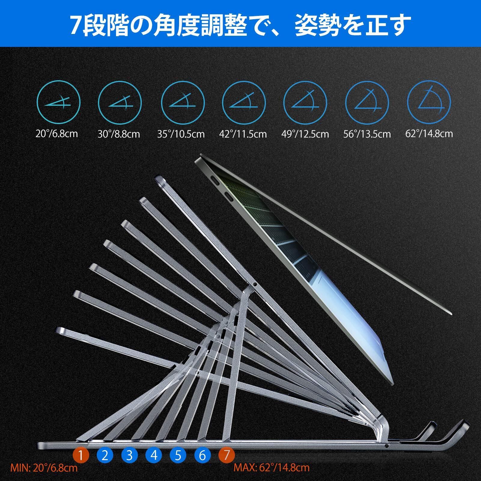 ノートパソコンスタンド タブレットスタンド ラップトップスタンド ノートPCスタンド 人間工学設計 7段高さ・角度調整可能 姿勢改善 腰痛/猫背解消 滑り止め 折りたたみ式 持ち運び便利 アルミ合金製 軽量PC/MacBook/ラップトップ/タブレットなどに対応 在宅勤務 リモート授業