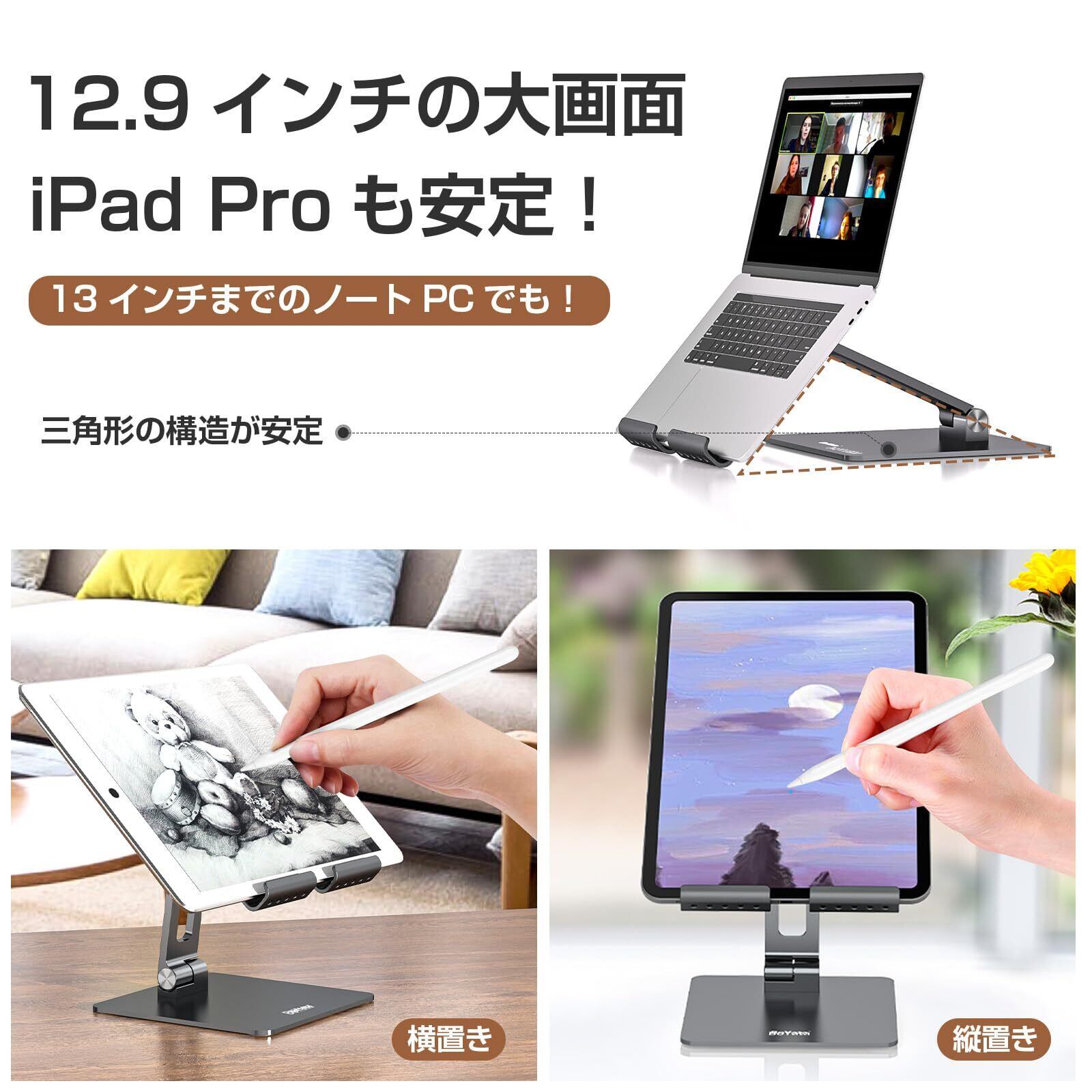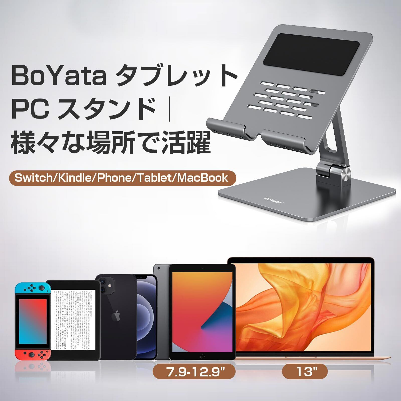 BoYata タブレットスタンド ipad/ipad pro/ipad air/ノートPC/Surface Pro スタンド 縦置き 横置き 安定性 姿勢改善 滑り防止パッド 軽量 折りたたみ式 炭素鋼 5-13インチのMacbook/iPad/Kindle/Surface/Nintendo Switch機種などに対応 グレー