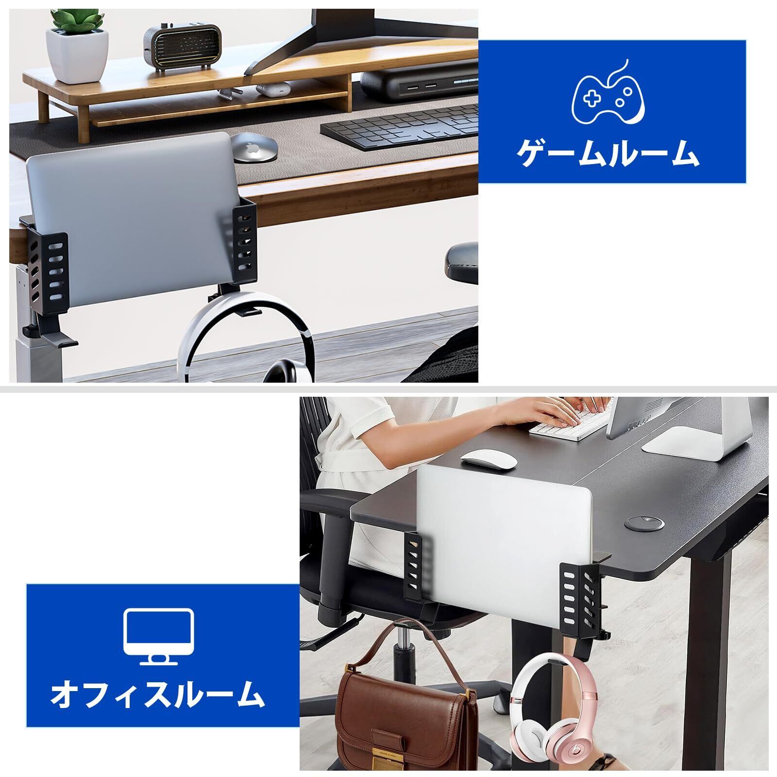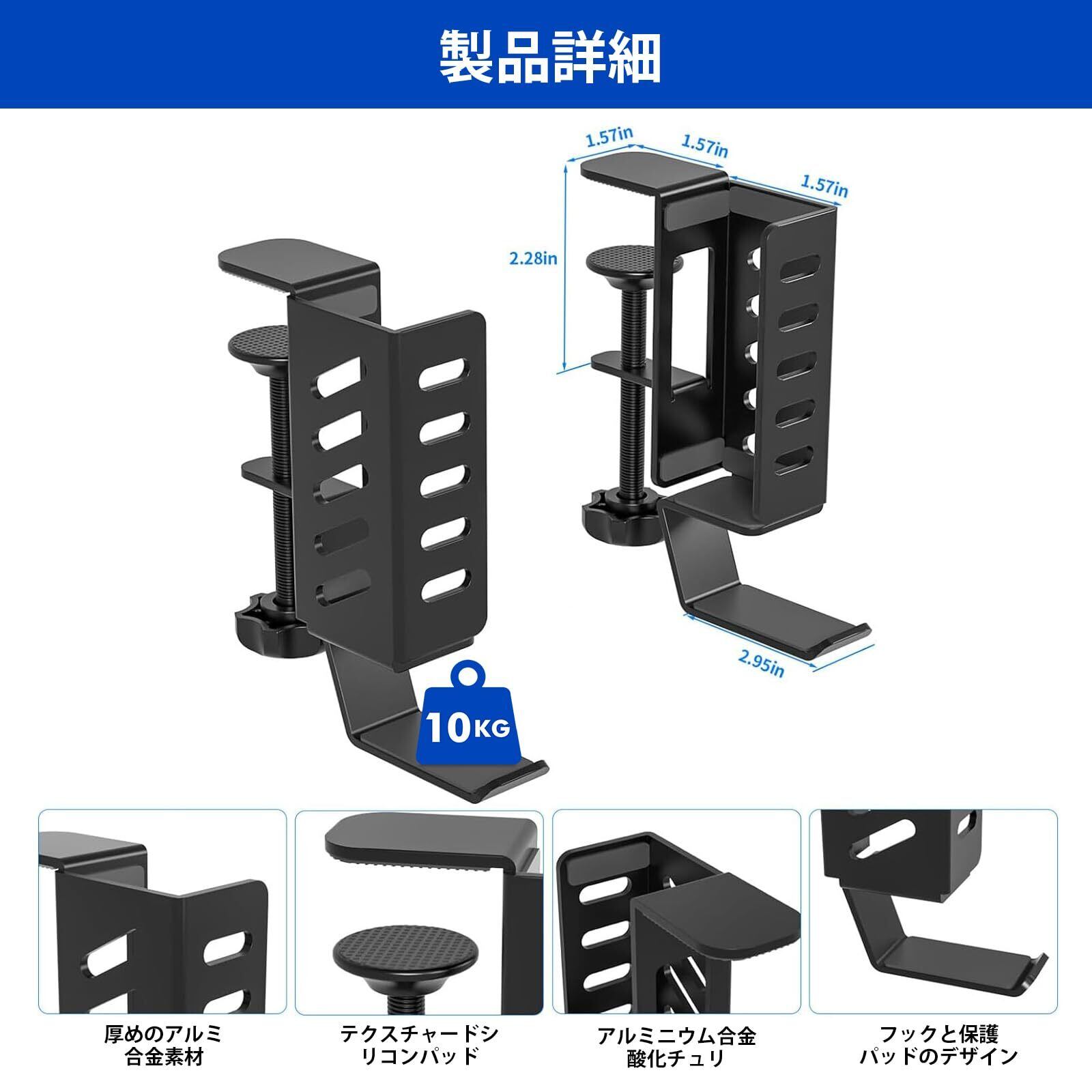 【2個セット】デスクサイドラック ノートパソコンPCラック ヘッドフォンフック付き ヘッドホンスタンド 耐荷重10KG 縦置き pcスタンド 収納 デスクサイドホルダー 簡単取り付け 卓上収納 穴あけ不要 スチール製 (ブラック)