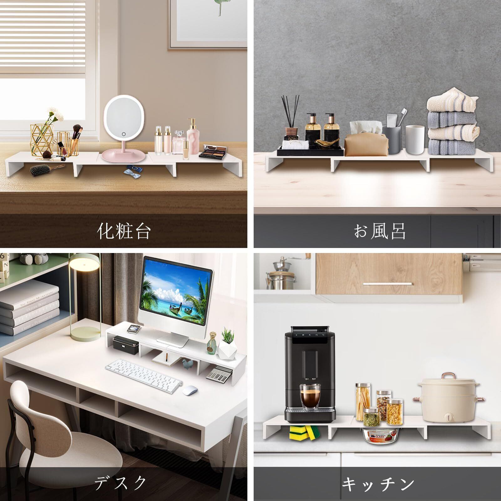 木製モニター台: 長さ72-110cm、高さ9cm、幅22cmのこのパソコン台は、プラスチック製よりも木製の方が質感や耐久性に優れ、洗面台の収納やキッチンの収納にも使え、様々なシーンに適応します