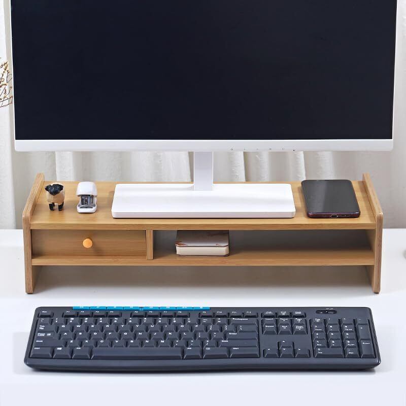 YIKATEND コンピュータモニタースタンド モニター台 パソコン台 引き出し1個 ディスプレイ台 机上台 人間工学デザイン ディスプレイ 台 PC台 デスク整理 キーボード収納 スマホ収納 pc台 机上 卓上 棚 デスク 上置棚 50cm x 20cm x 12cm パソコン台 机上ラック