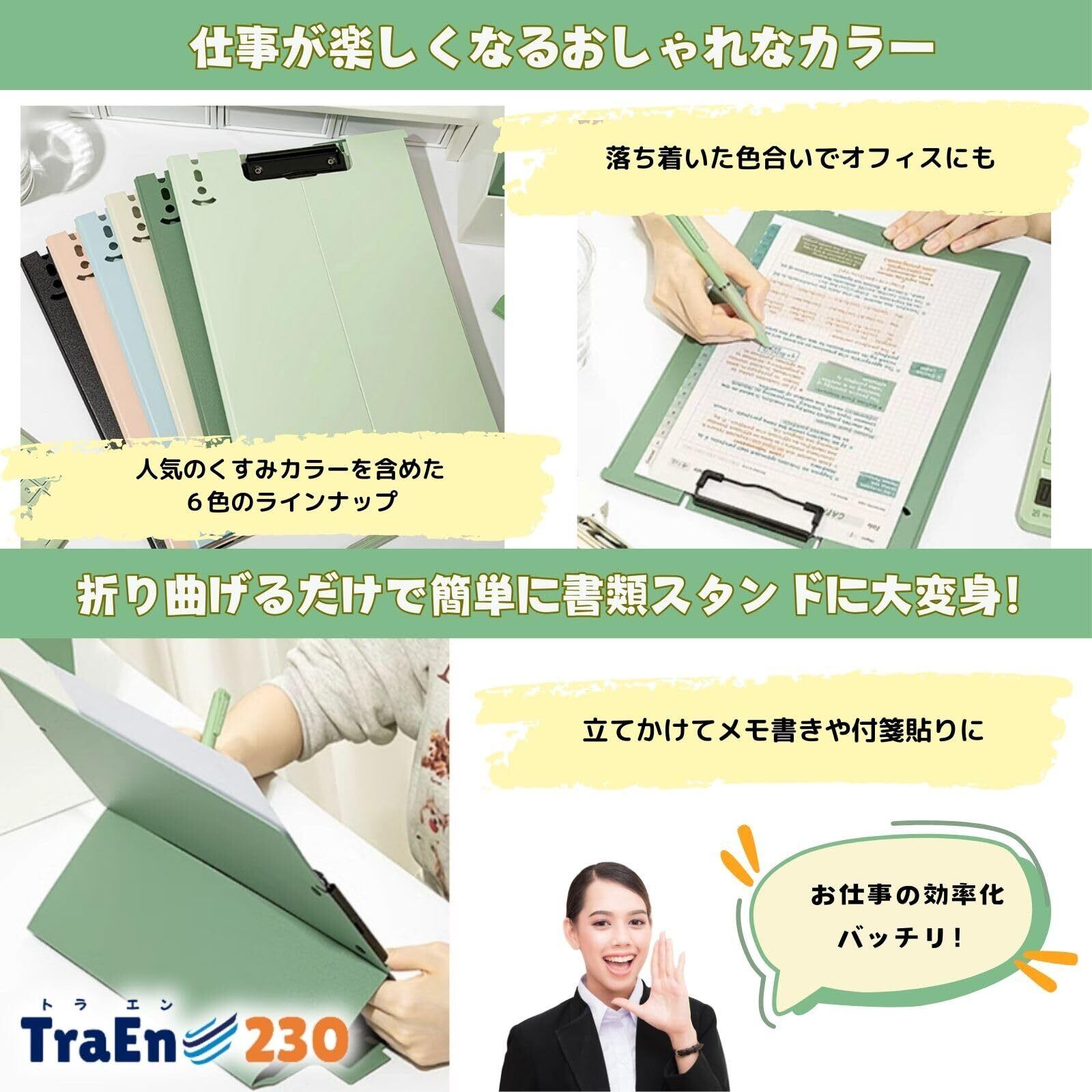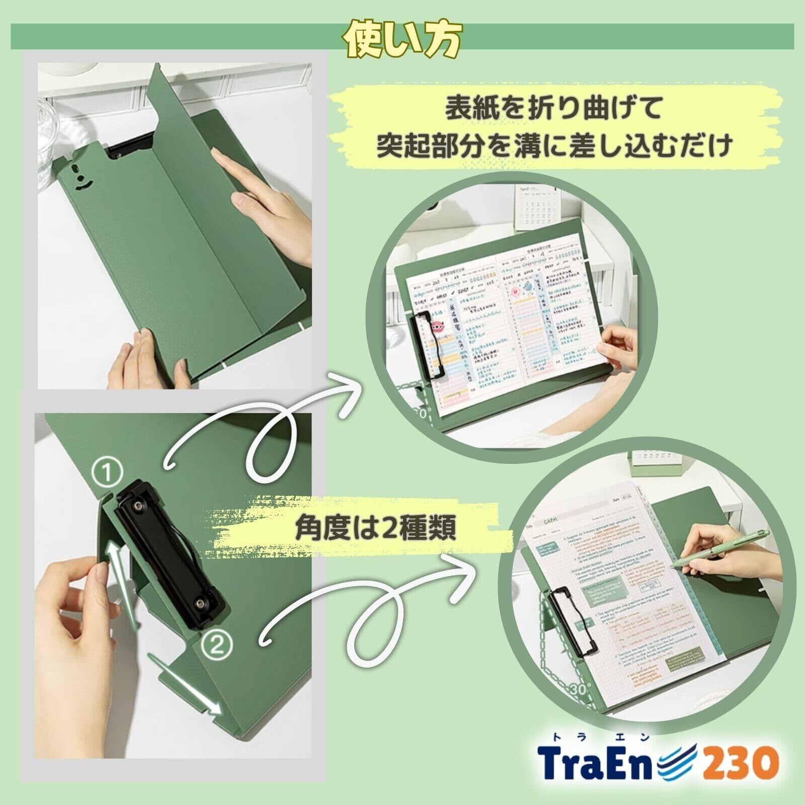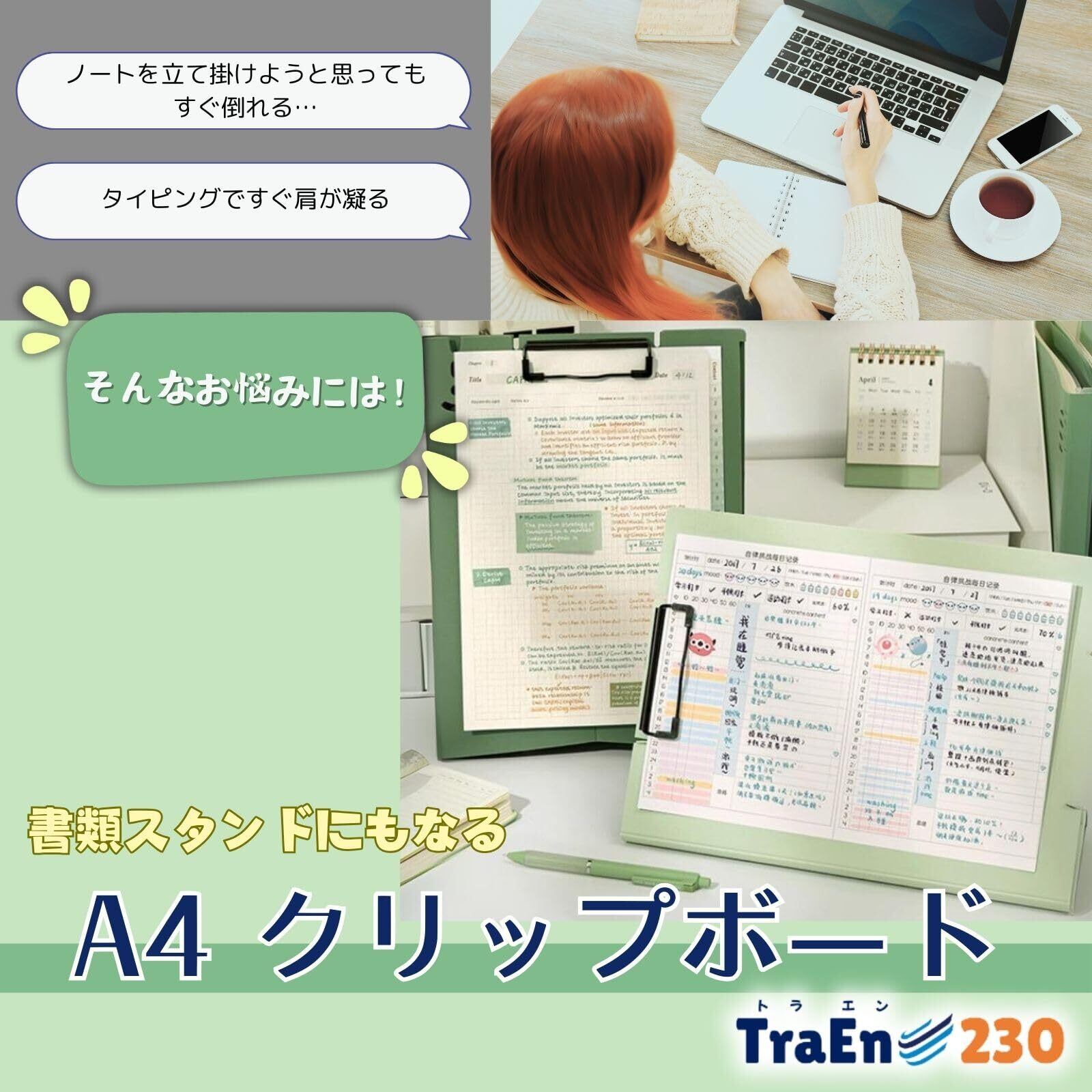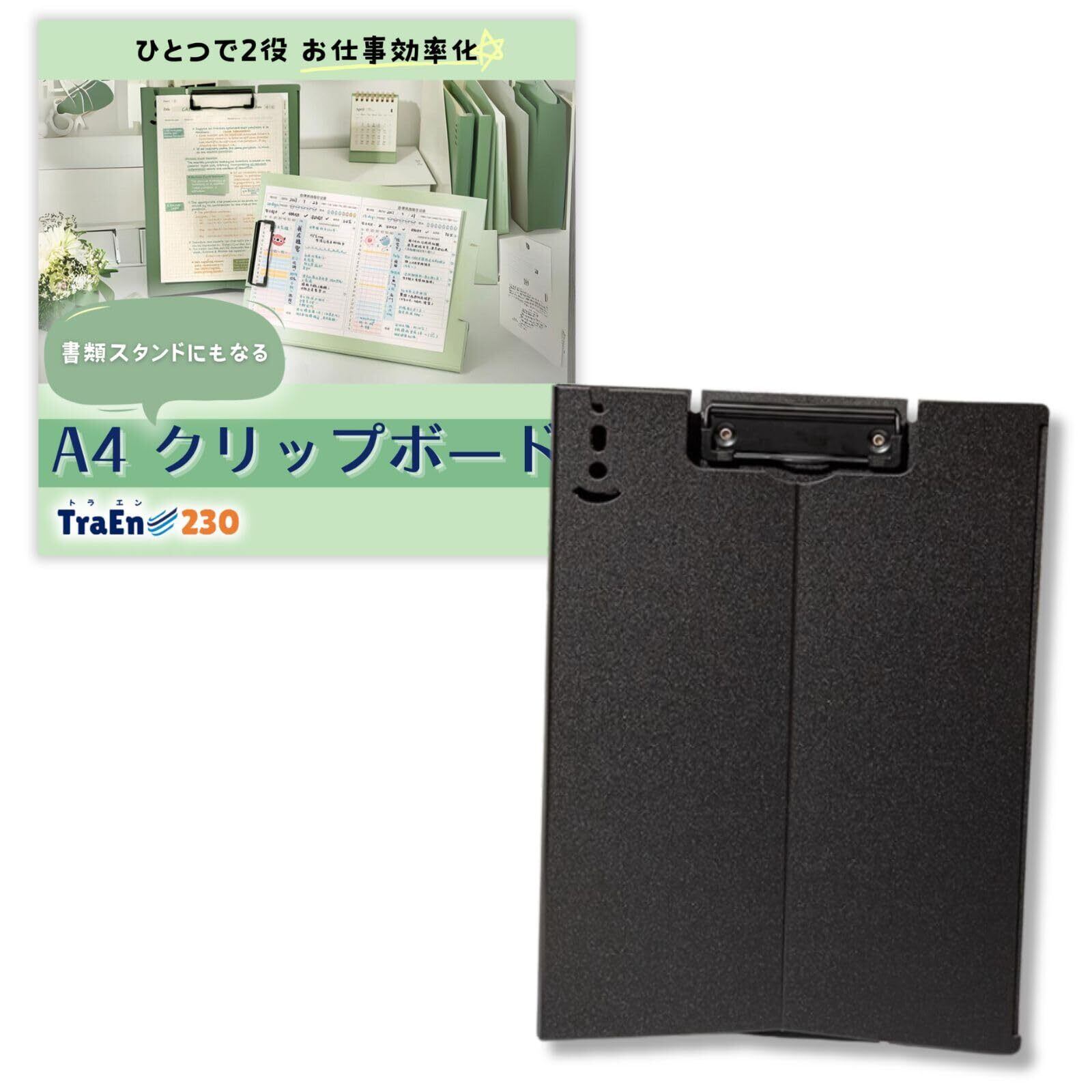 TraEn230 クリップボード a4 2つ折り バインダー 横 書類スタンド 便利グッズ 仕事 クリップファイル 書類立て 付箋ボード メモスタンド 卓上 メモボード (ブラック, A4)