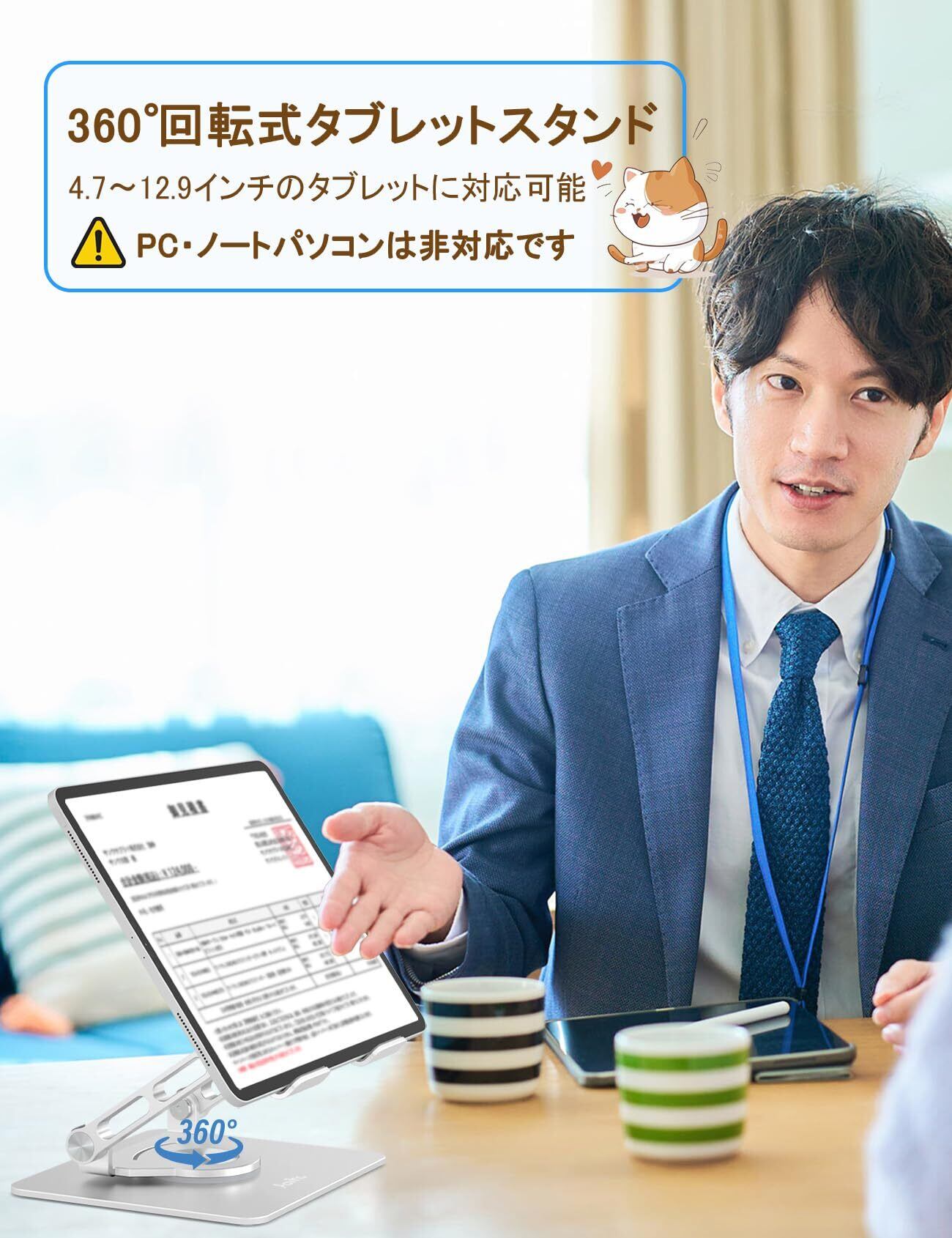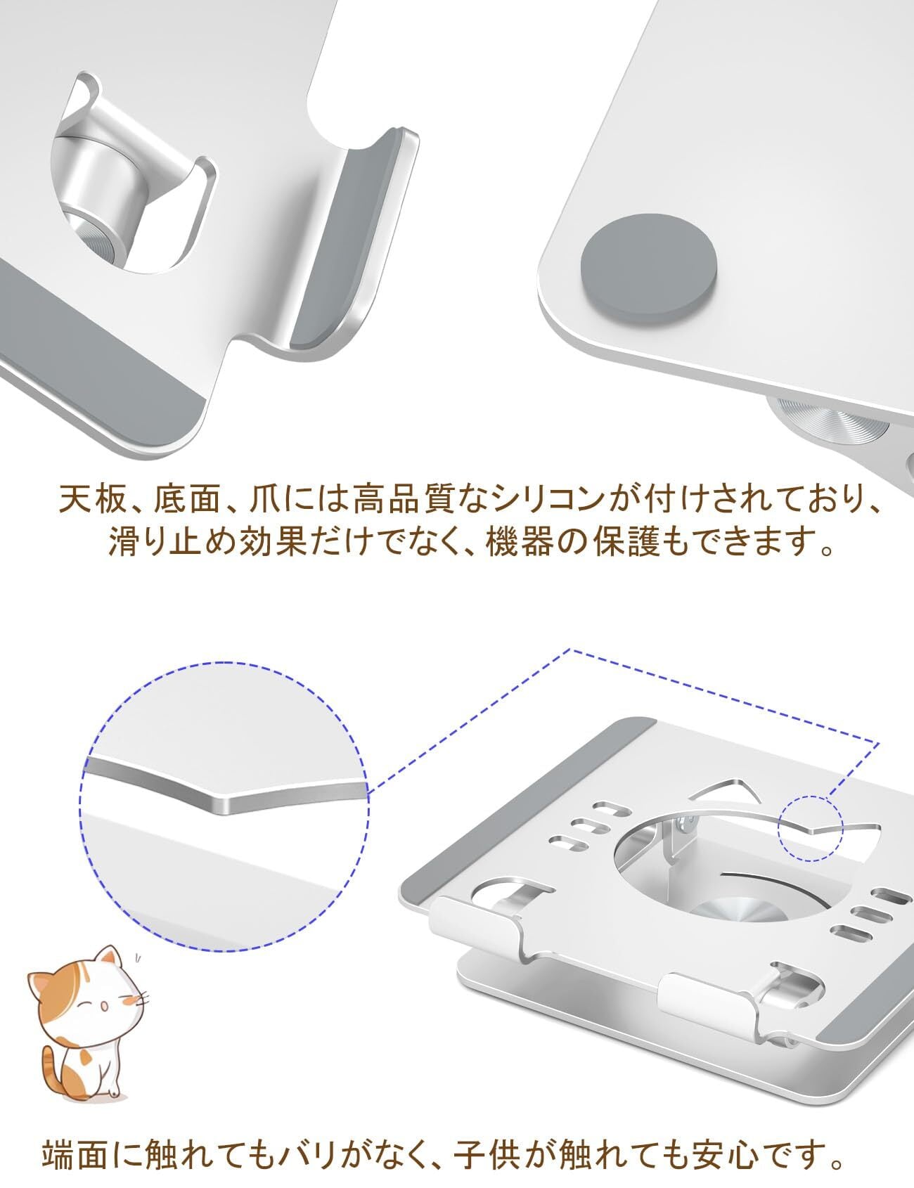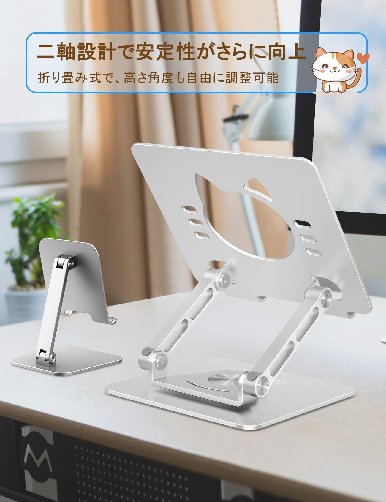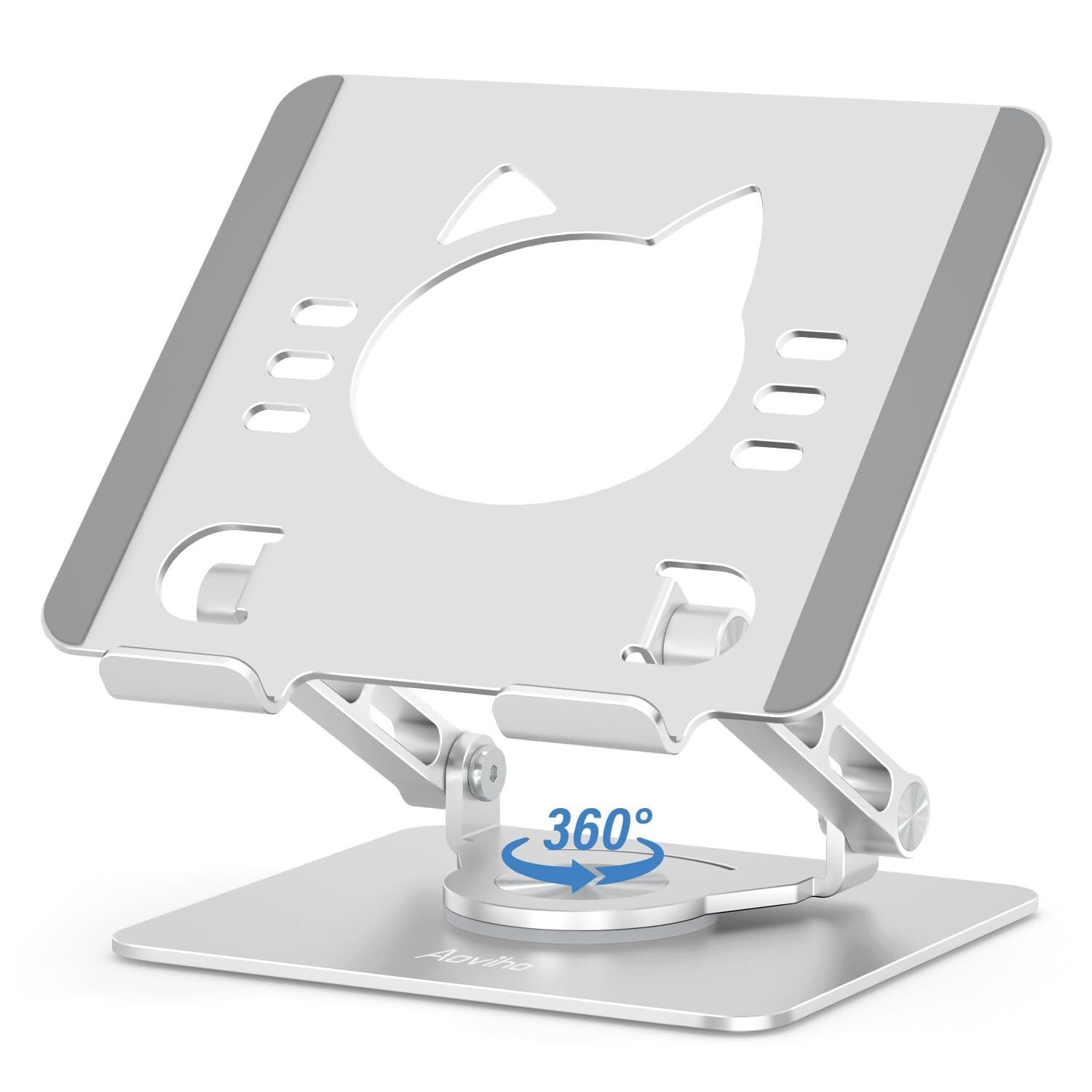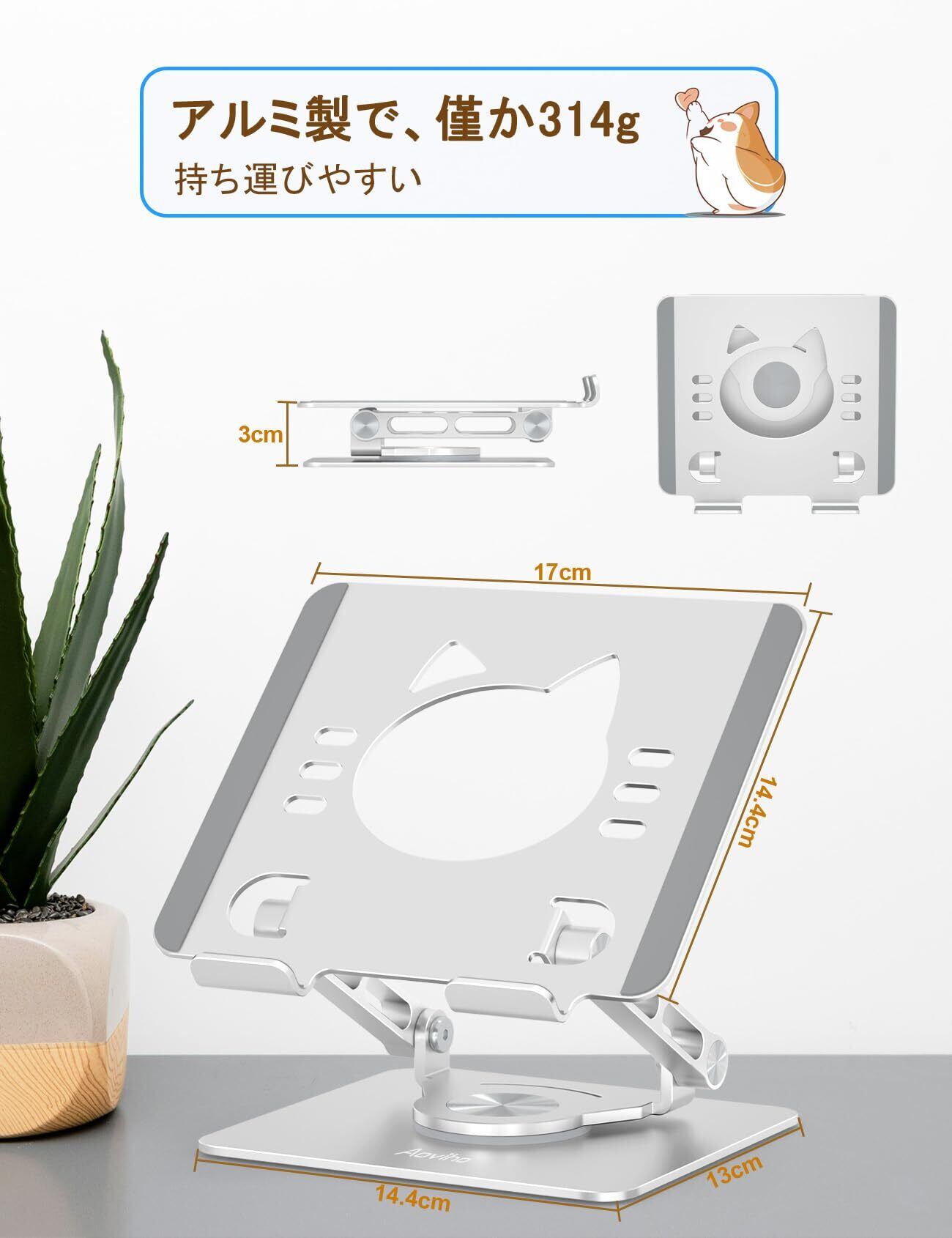 アオビホ(Aoviho) - ipadスタンド - タブレットスタンド - 360度回転式 - アイパッド 置き台 卓上ホルダー 折り畳み式 高さ角度調整可能 スマホ立て tablet stand 充電可能 持ち運び便利 姿勢改善 アルミ製 軽量 人間工学 iPad mini/iPad air/Pro/Switch/Kindleなど 4.7-12.9インチに対応 (銀 シルバー)