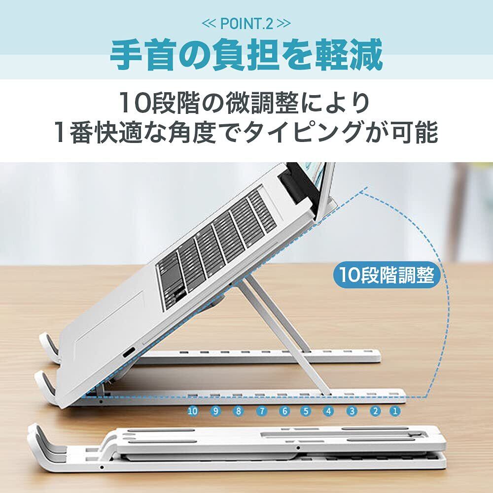 ノート パソコン スタンド PC 折りたたみ 台 机上 タブレット 冷却 放熱 スタンド 持ち運び 高さ 調節 角度調整 肩こり ラップトップ タブレット (ホワイト)