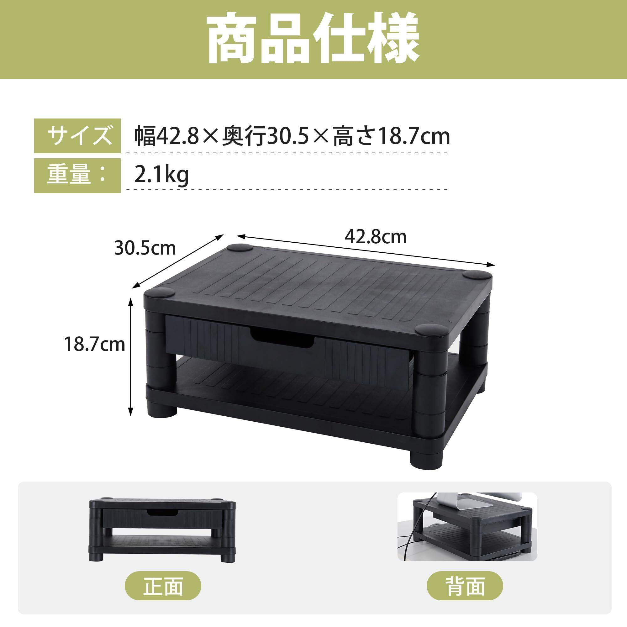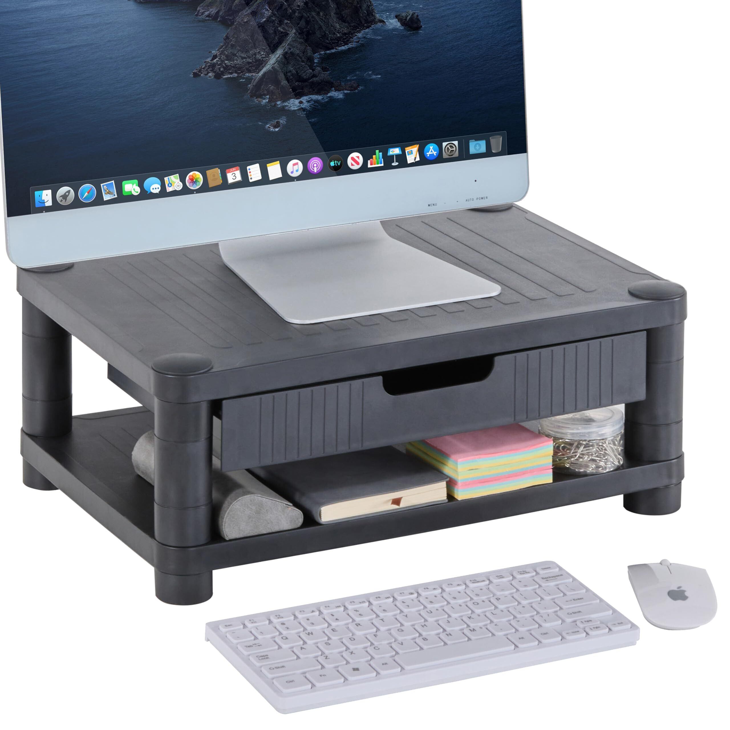 【在庫処分】VECELO モニター台 モニタースタンド 幅42.8×奥行30.5×高さ18.7cm 二段式 引き出し 組立簡単 スマホホルダー付き 滑り止め 高さ調節可 プリンタ台 キーボード マウス収納 卓上収納 文具収納 目線が上がる 姿勢改善 安定性猫背防止 ワーク対策 机上台 整理整頓 テレワーク 在宅勤務 オフィス 省スペース ブラック | paghag