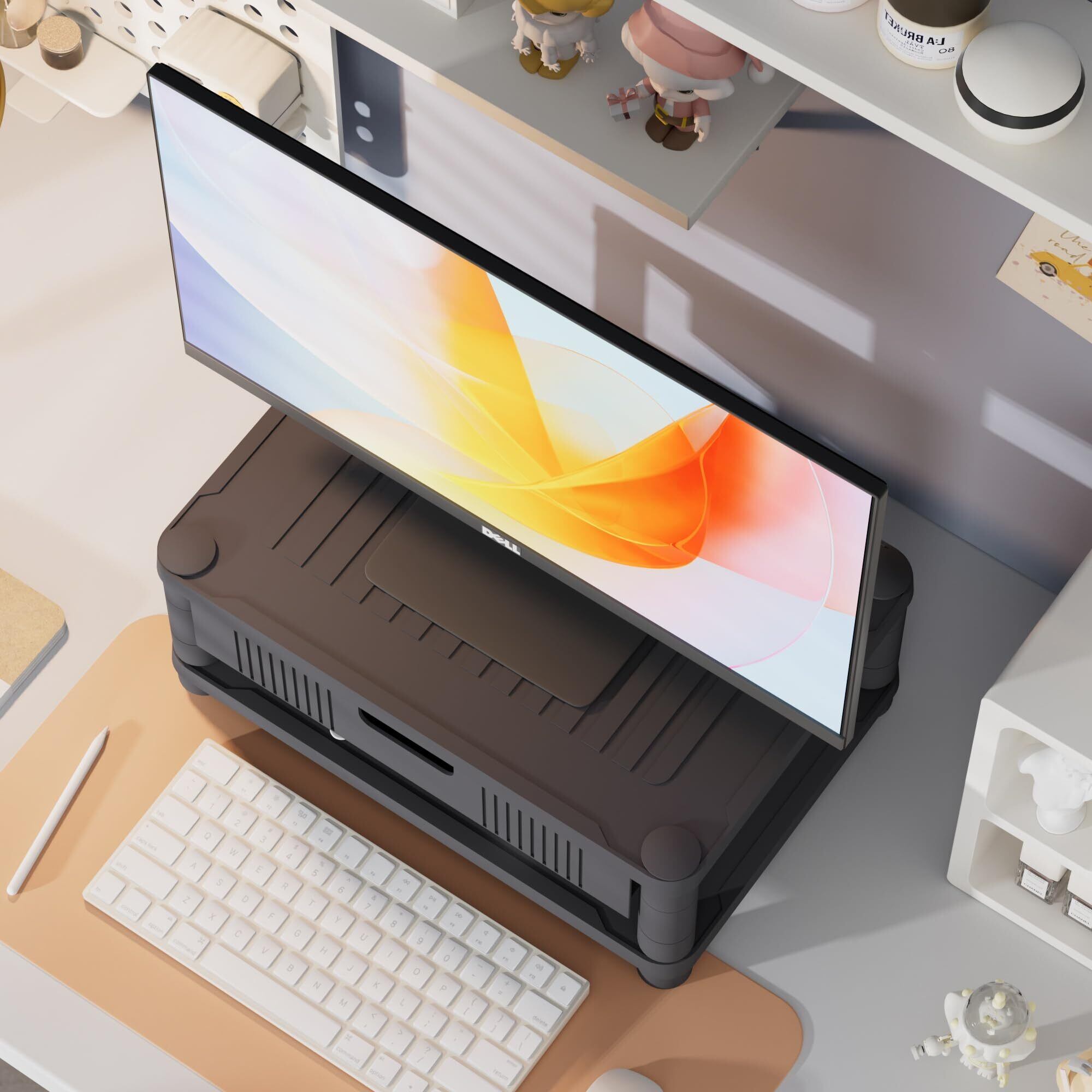VECELO モニター台 モニタースタンド 幅42.8×奥行30.5×高さ18.7cm 二段式 引き出し 組立簡単 スマホホルダー付き 滑り止め 高さ調節可 プリンタ台 キーボード マウス収納 卓上収納 文具収納 目線が上がる 姿勢改善 安定性猫背防止 ワーク対策 机上台 整理整頓 テレワーク 在宅勤務 オフィス 省スペース ブラック