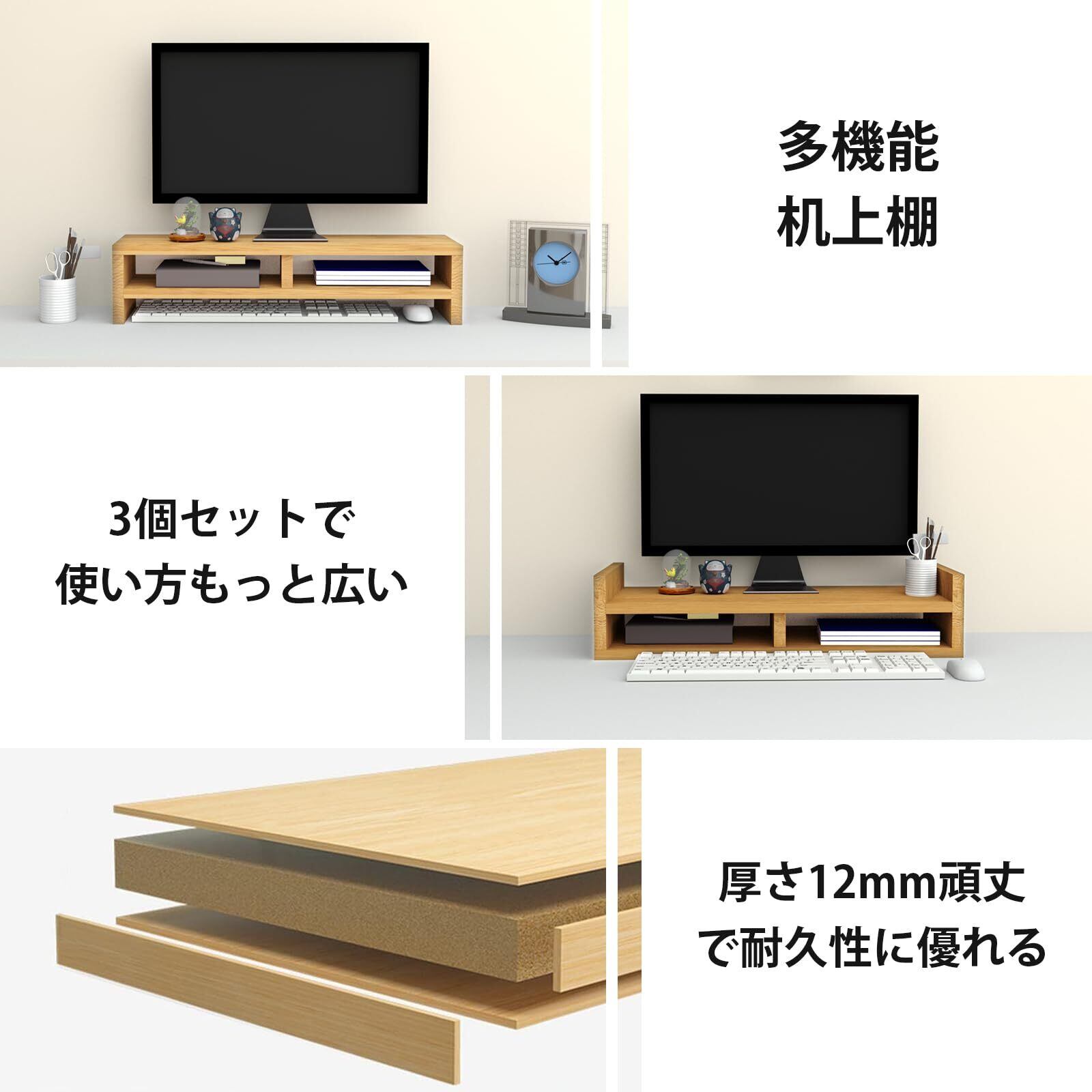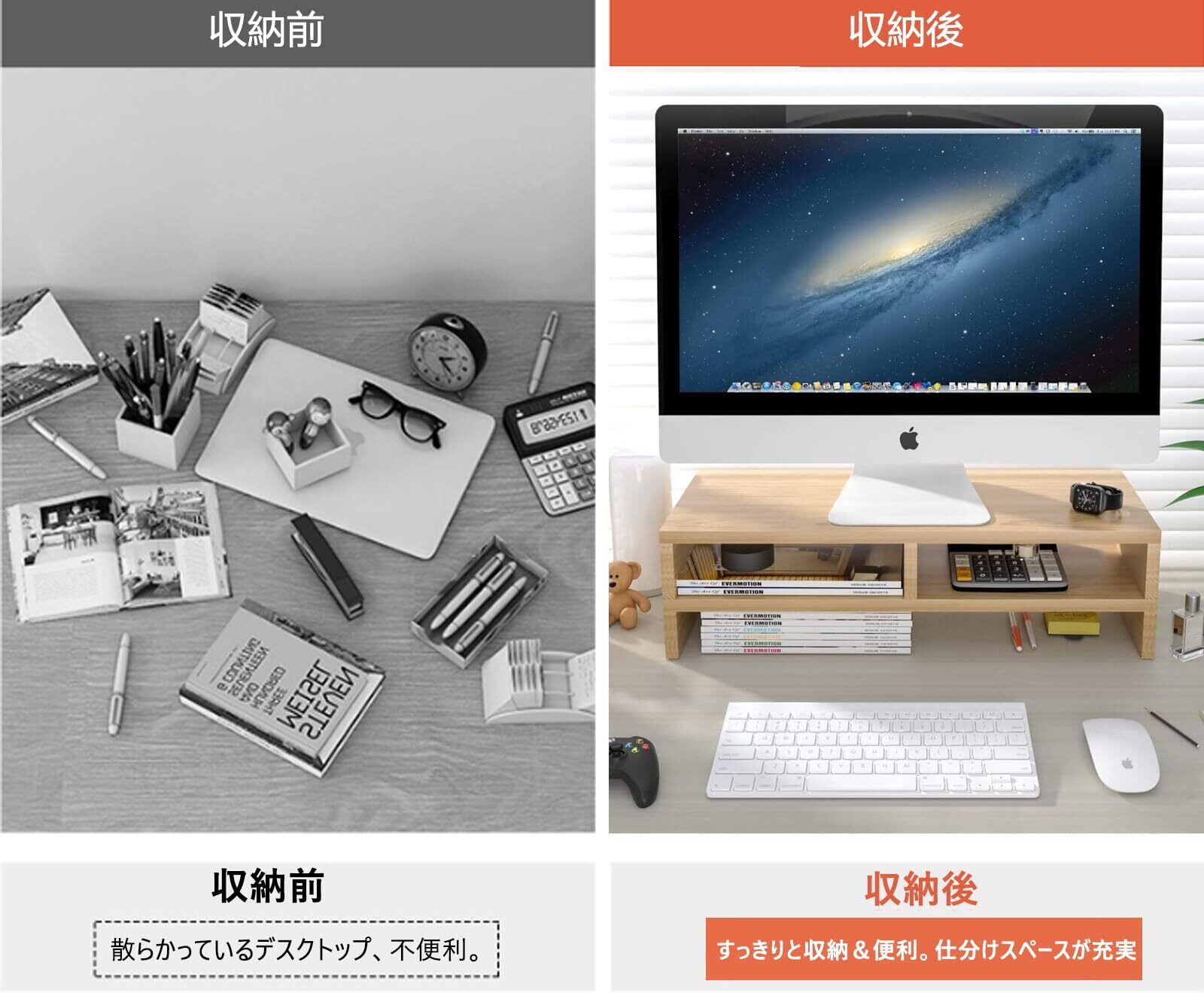 【省スペース&多機能】モニター台は様々な場合に大活躍!本棚やプリンター台/fax台などとしても便利です。キーボードやマウスを収納するには役に立ちます。多機能な机上台で、オフィスや研究室やリビングルームなどの場合もオススメです。画像や鉢植えなどお好きなものを飾れば、自分だけの癒し空間がつくれます。疲れが吹き飛んで作業率もアップさせる。