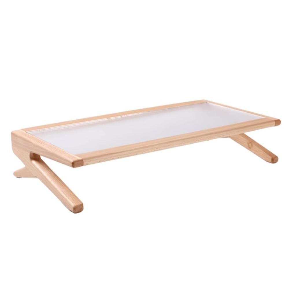 【商品情報】材質:純実木+強化ガラス、縦横高さ:56 x 25 x 9 cm、重量:1.8 kg、包装縦横高さ:58 x 26 x 12 cm、包装後重量:2.2 kg。