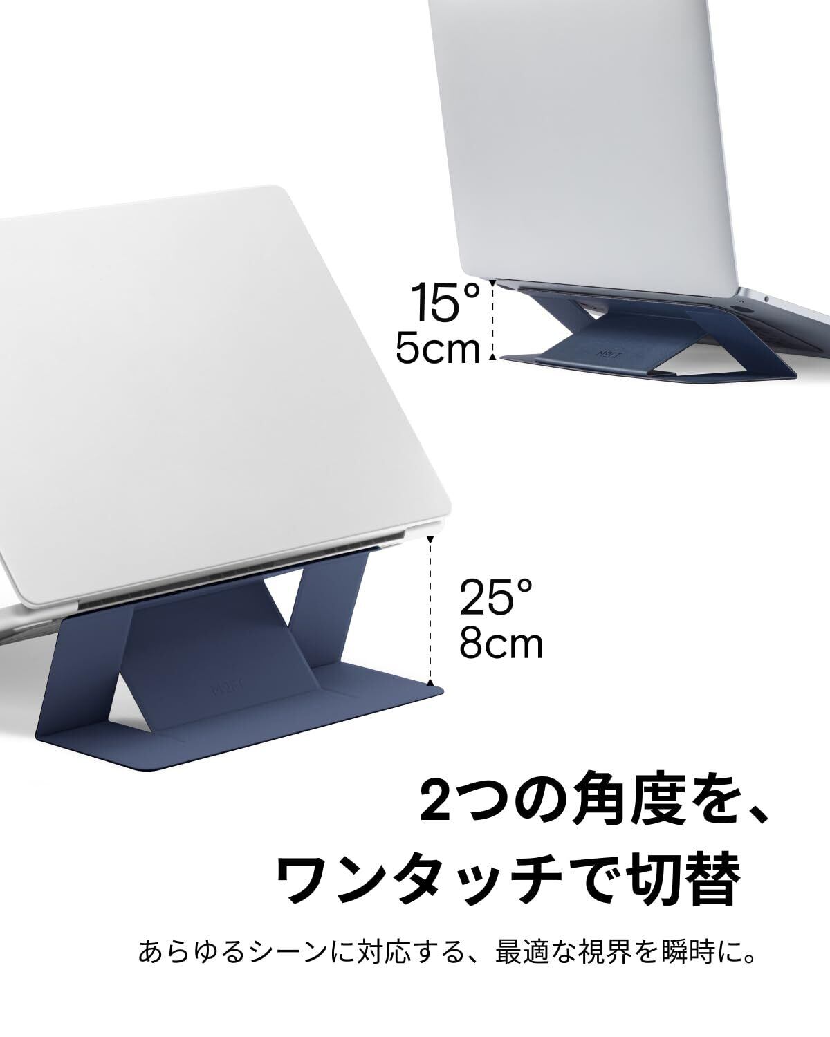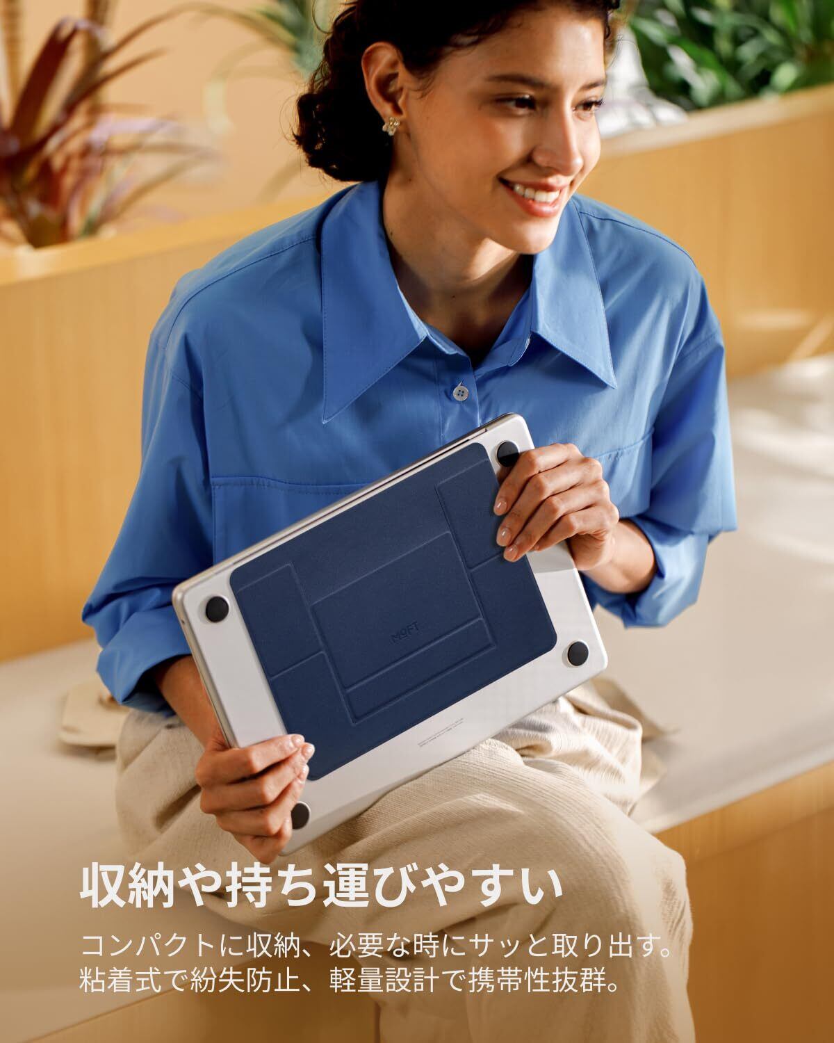 MOFT【公式直営店】ノートパソコンスタンド ノートPCスタンド 【放熱穴付き】 持ち運び簡単 折りたたみ式 超薄型 安定性 15°&25°二段階調整可能 16インチまで対応 コンパクト PC/MacBook/ラップトップ/iPadタブレット に対応 パソコンスタンド 「貼り付け」(ディープブルー)