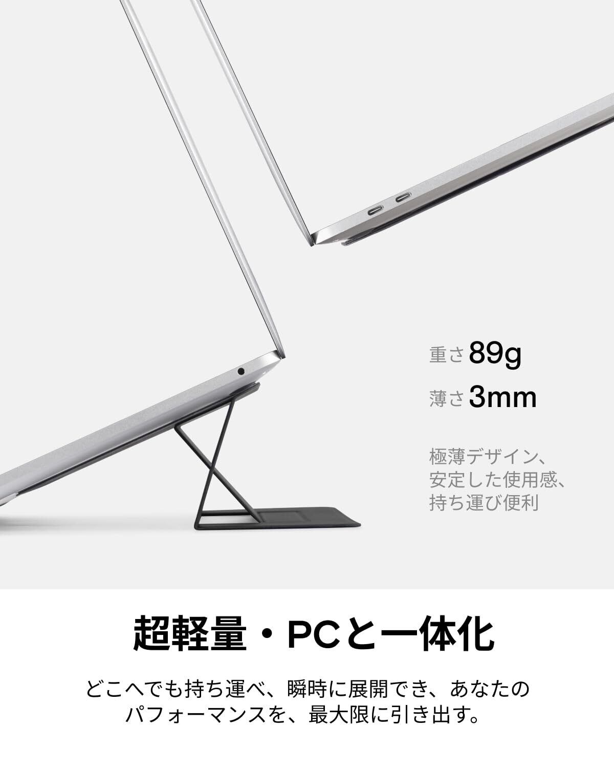 【世界初・即刻開き】2019年にアメリカKickstarterで初デビューし、数百万ドルを調達したスター製品——世界最薄クラスのノートPCスタンド「 MOFT(モフト)」 オリジナル折りたたみ式デザインにより、一瞬で開いて使用できます。デビューして三年間、世界中100万人以上のユーザーに愛用され、人々のデジタルライフにサポートし続けました。