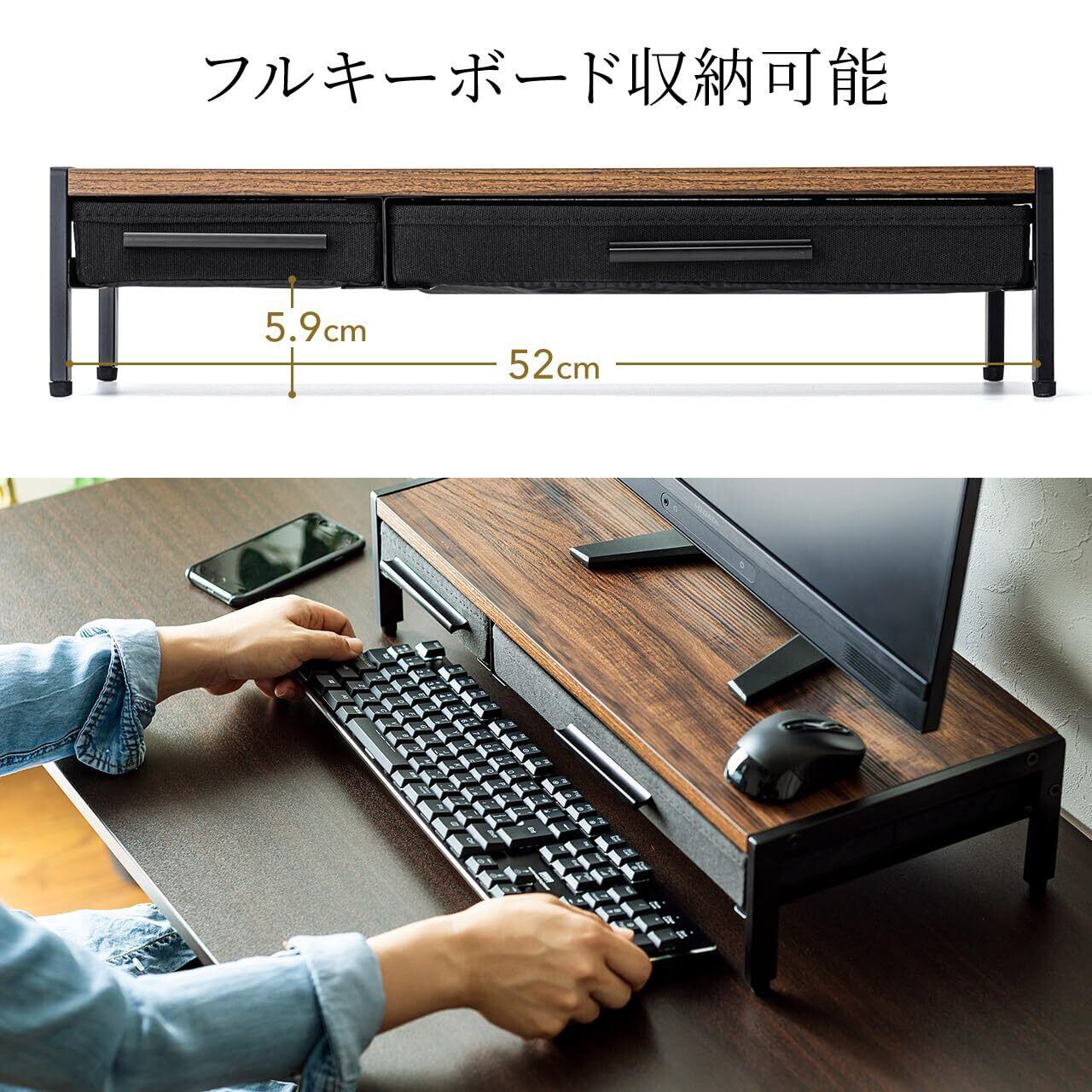 サンワダイレクト モニター台 引き出し A4収納 幅54×奥行25×高さ12.5cm 木製 ブラック 100-MR166BK