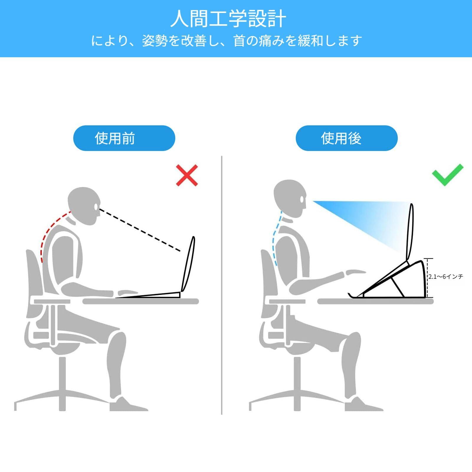 目的: 姿勢を改善し、安定性を提供することでノートパソコンの使用を向上