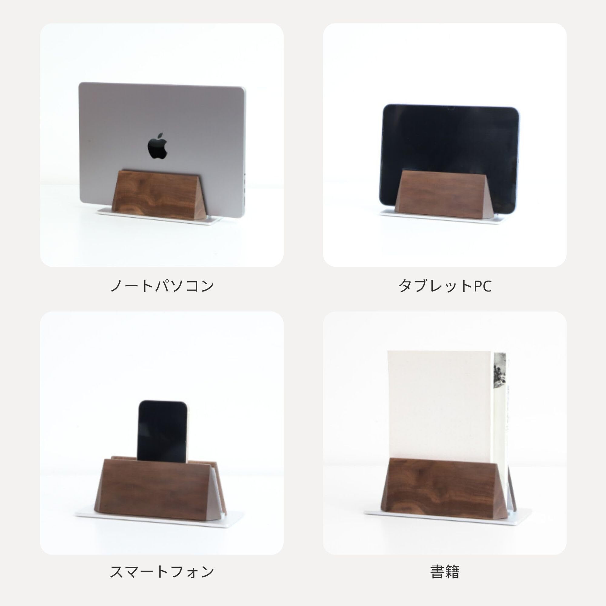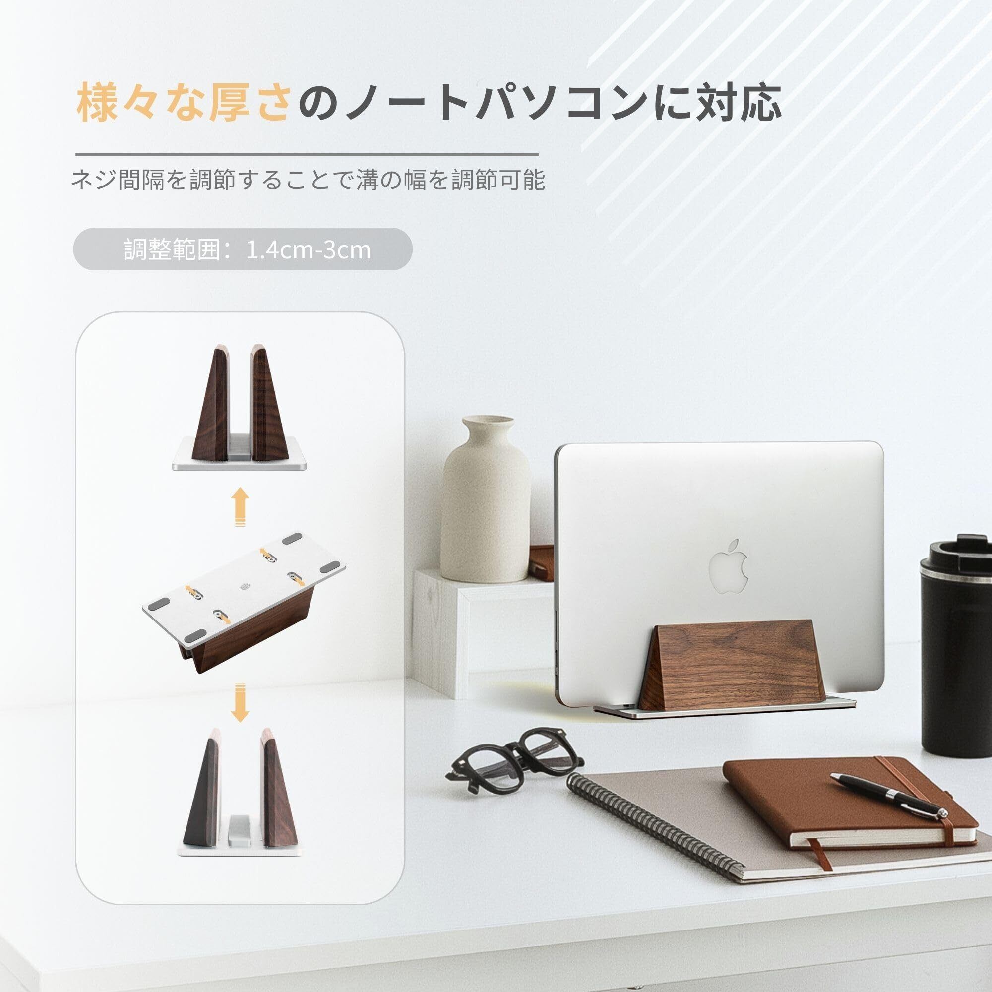 【在庫セール】Muso Wood ノートパソコンスタンド 縦型 pcスタンド 縦置き 幅調節可能 収納 パソコン台 卓上 ラップトップスタンド 滑り止め 安定性 全機種対応 (アルミ合金製+ウォールナット) | paghag