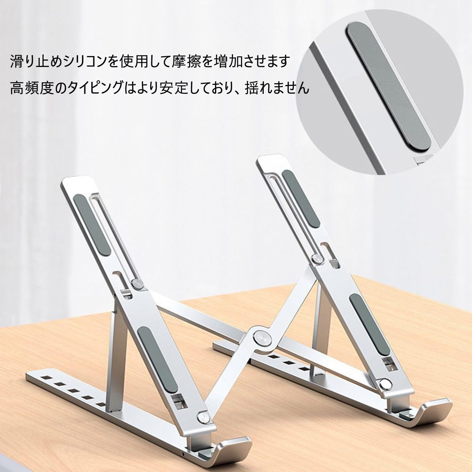 滑り止め設計:ラップトップスタンドには滑り止めシリコンパッドが装備されており、コンピュータの落下を防ぎます。前面と背面の二重滑り止め設計により、コンピュータを最大限に保護し、最高の使用体験を提供します