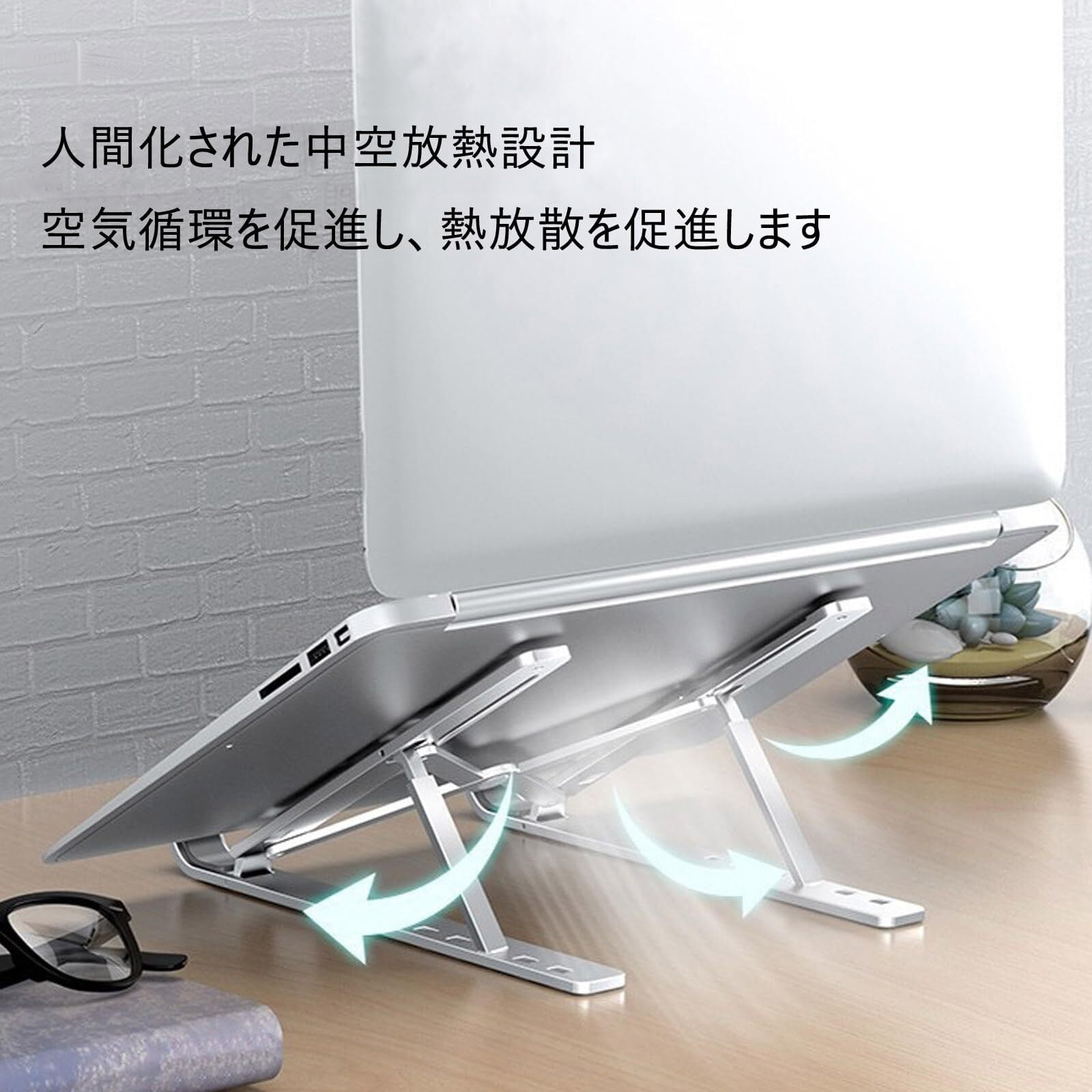 放熱設計:このノートパソコンスタンドは放熱性に優れており、本体とカウンタートップの接触を減らし、コンピューターの熱を効果的に放散します