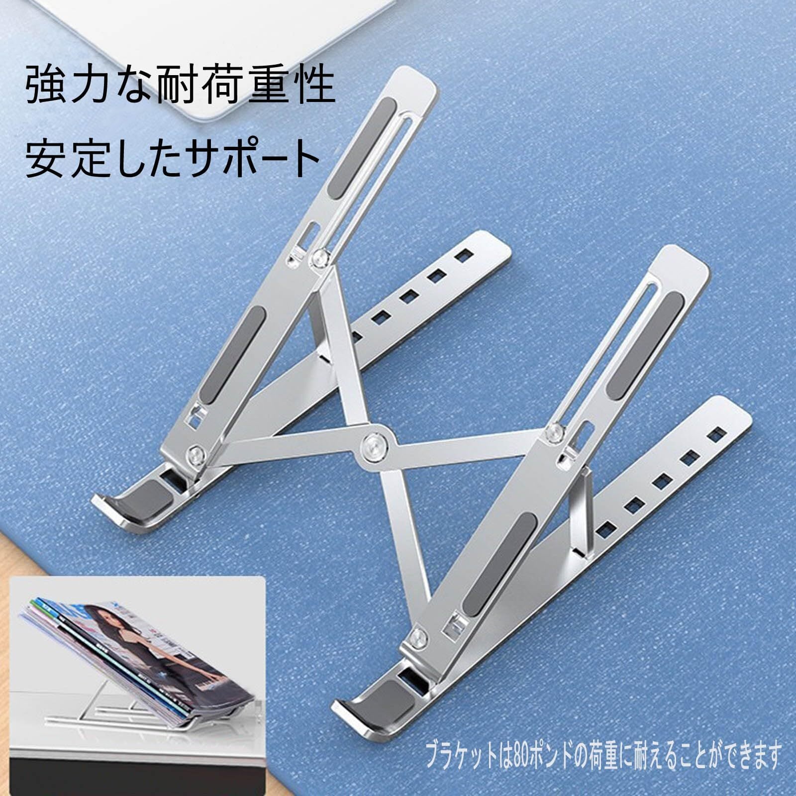 強力な耐荷重性:このパソコンスタンド卓上高強度合金素材で作られており、三角形の構造と丁寧な組み立てにより、本体の耐荷重は80kgに達し、重いノートパソコンを載せても傾きません