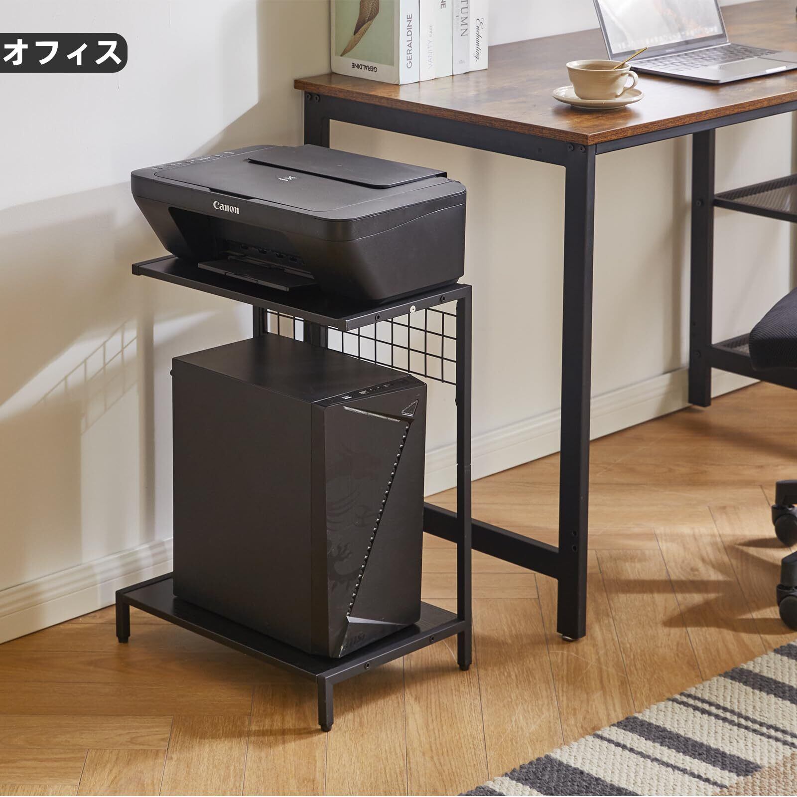 負荷能力:卓上パソコン台のサイズは幅43×奥行25/29×高さ43cm、材料は鋼材とパーティクルボードです。組み立てが容易で、上層荷重10kg、下層荷重20kg