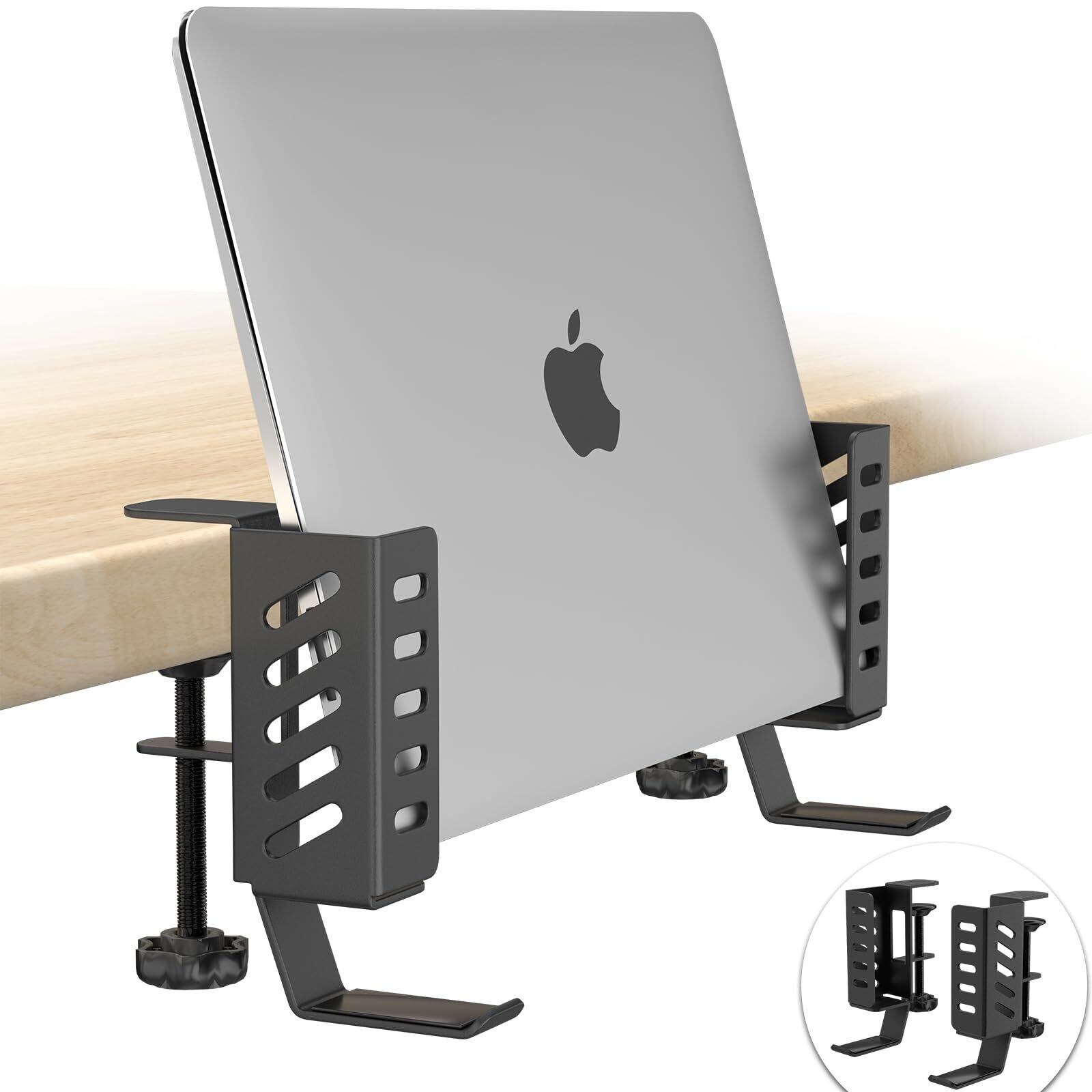 【特価商品】LASGU デスクサイド 収納ラック ノートパソコンスタンド 卓上 デスクサイドラック フック付き 幅調整可能 耐荷重10KG 縦置き 横置き 取り付け簡単 スチール製 デスク収納 ノートPC・タブレット・書類などに適用 デスク下 周り 収納 棚 拡張デスク 【2個セット ブラック】