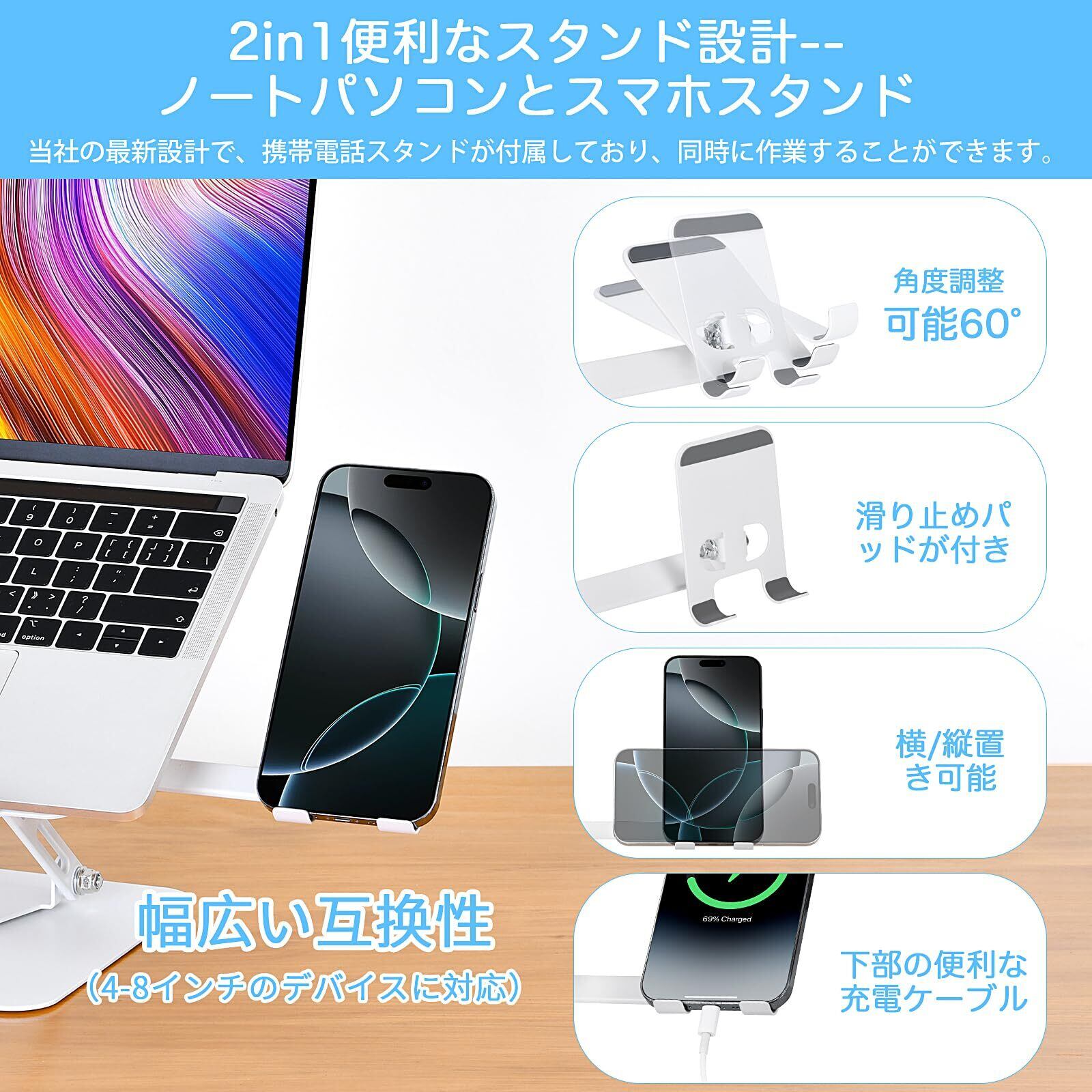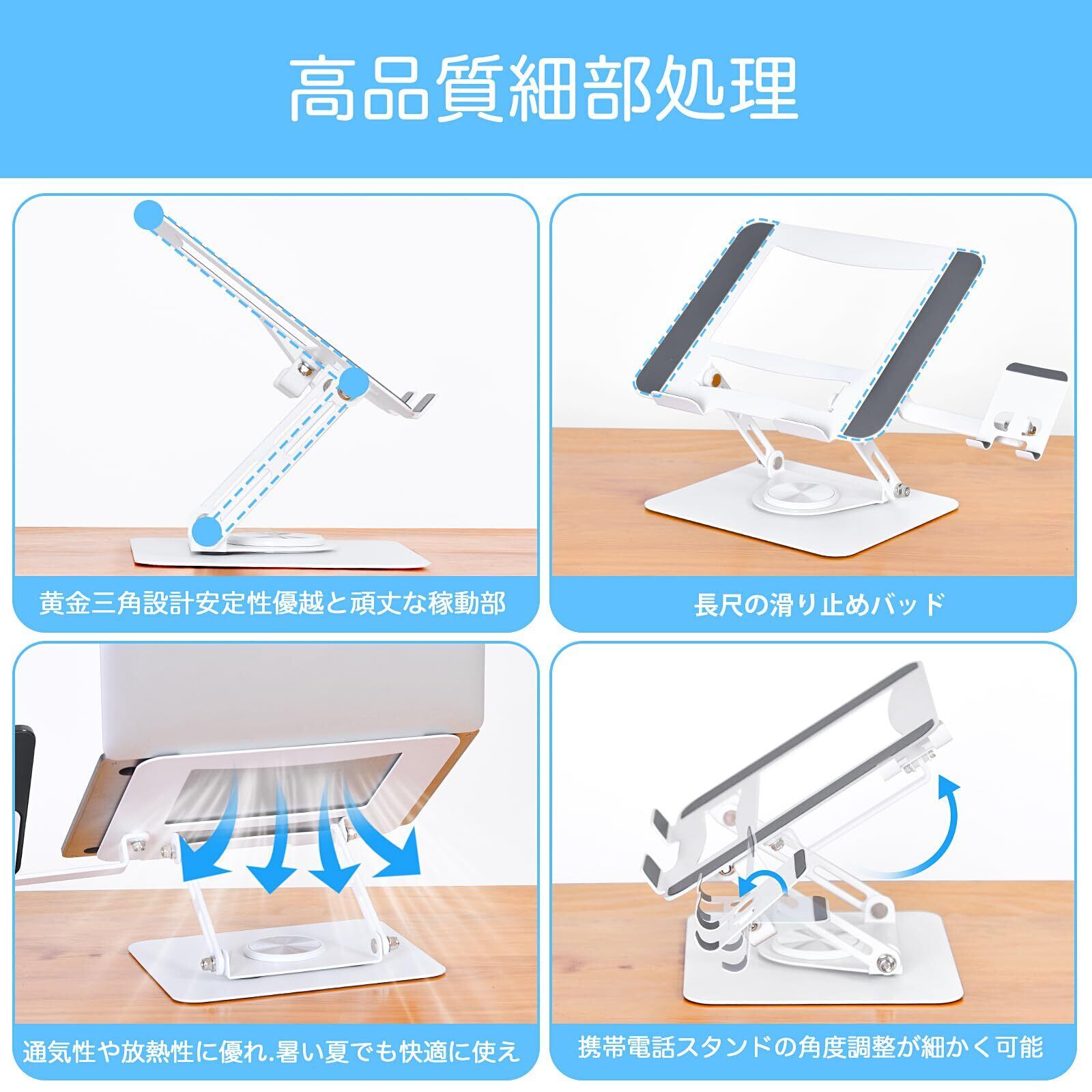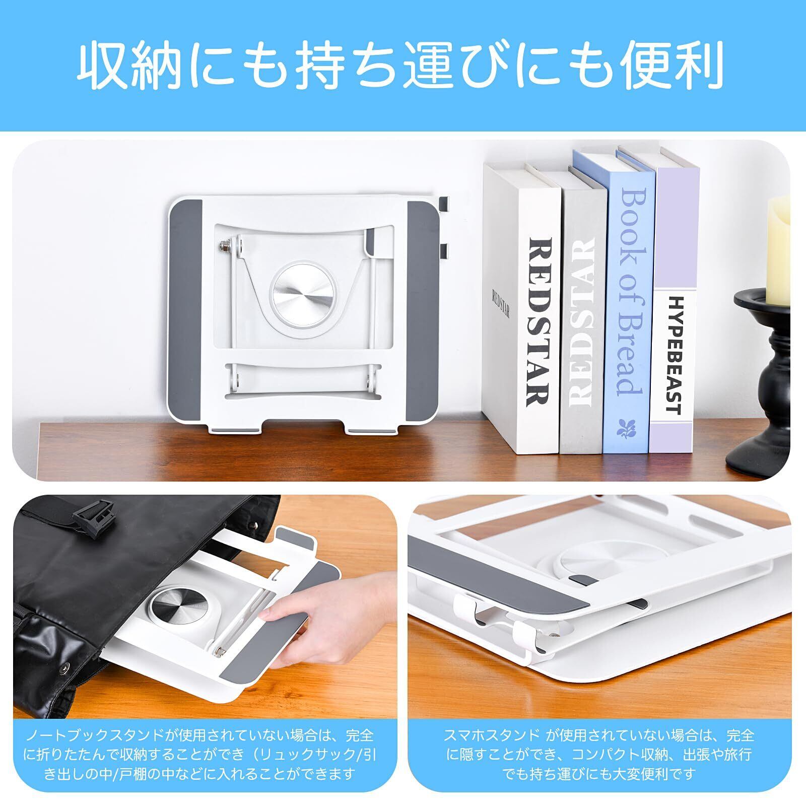 【在庫セール】MOHOPE ノートパソコンスタンド スマホスタンド付 パソコンスタンド 回転360° 折りたたみ式 滑り止め 角度 高さ無段階調節 laptop stand 人間工学 姿勢改善 猫背改善 放熱 耐荷重8kg PCスタンド Macbook Pro Macbook Air iPadスタンド (ホワイト) | paghag