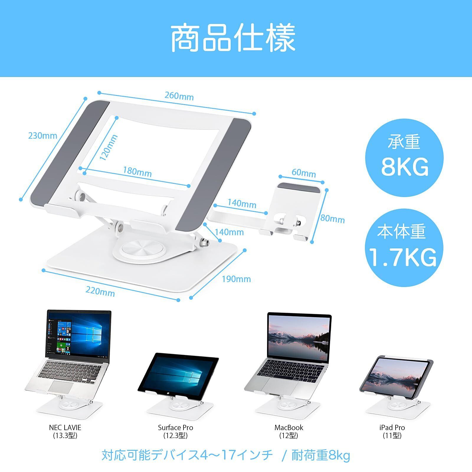 MOHOPE ノートパソコンスタンド スマホスタンド付 パソコンスタンド 回転360° 折りたたみ式 滑り止め 角度 高さ無段階調節 laptop stand 人間工学 姿勢改善 猫背改善 放熱 耐荷重8kg PCスタンド Macbook Pro Macbook Air iPadスタンド (ホワイト)
