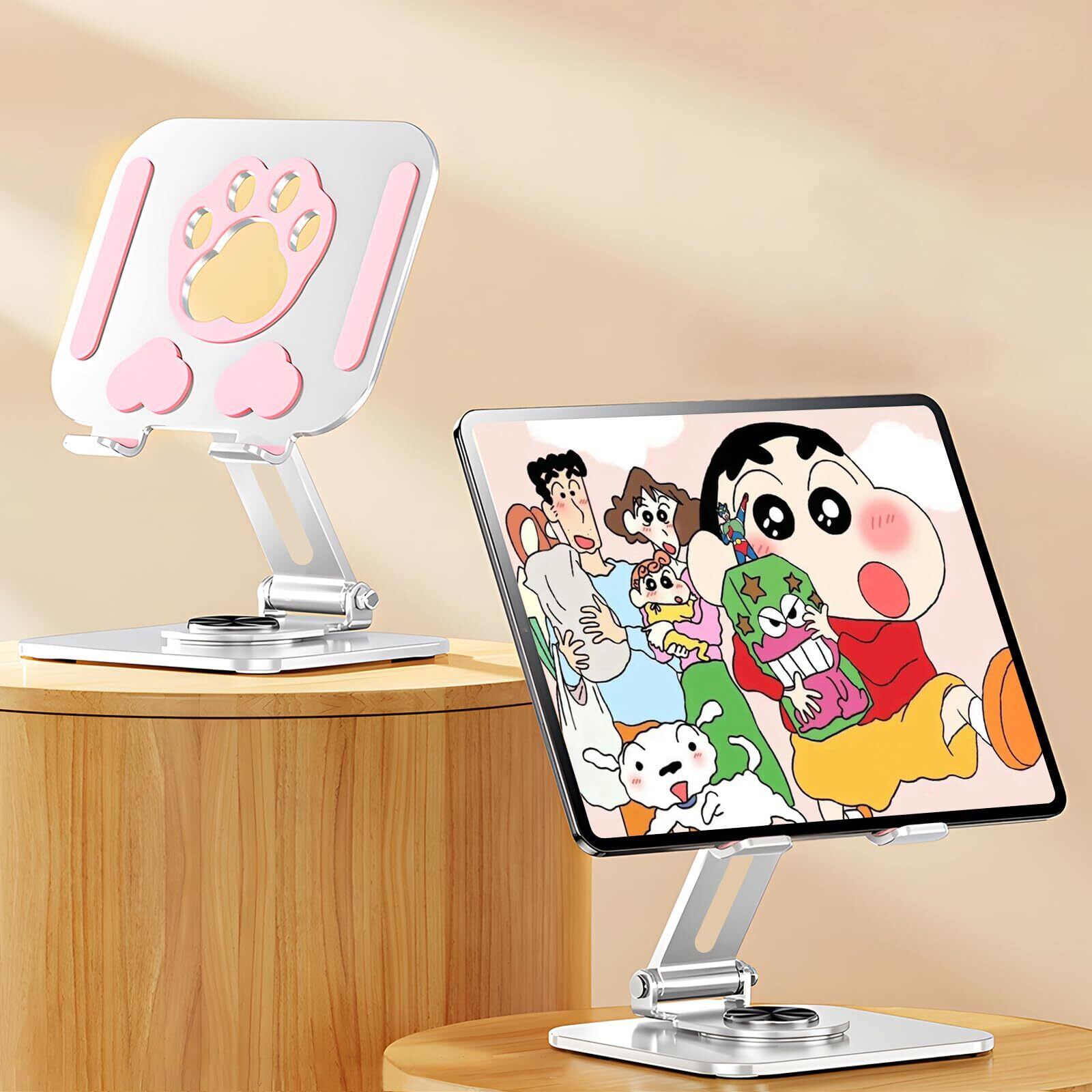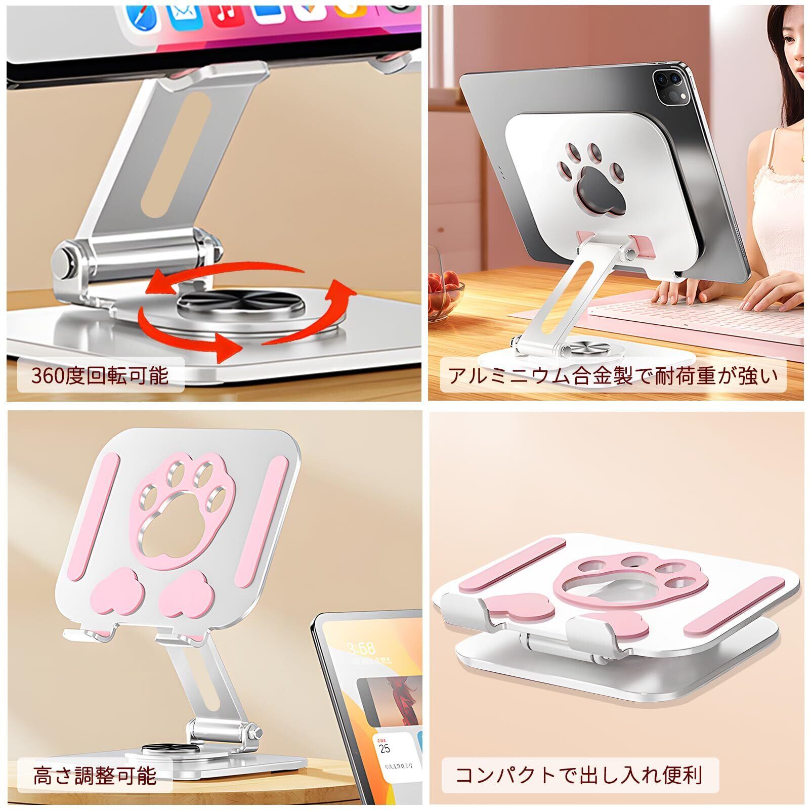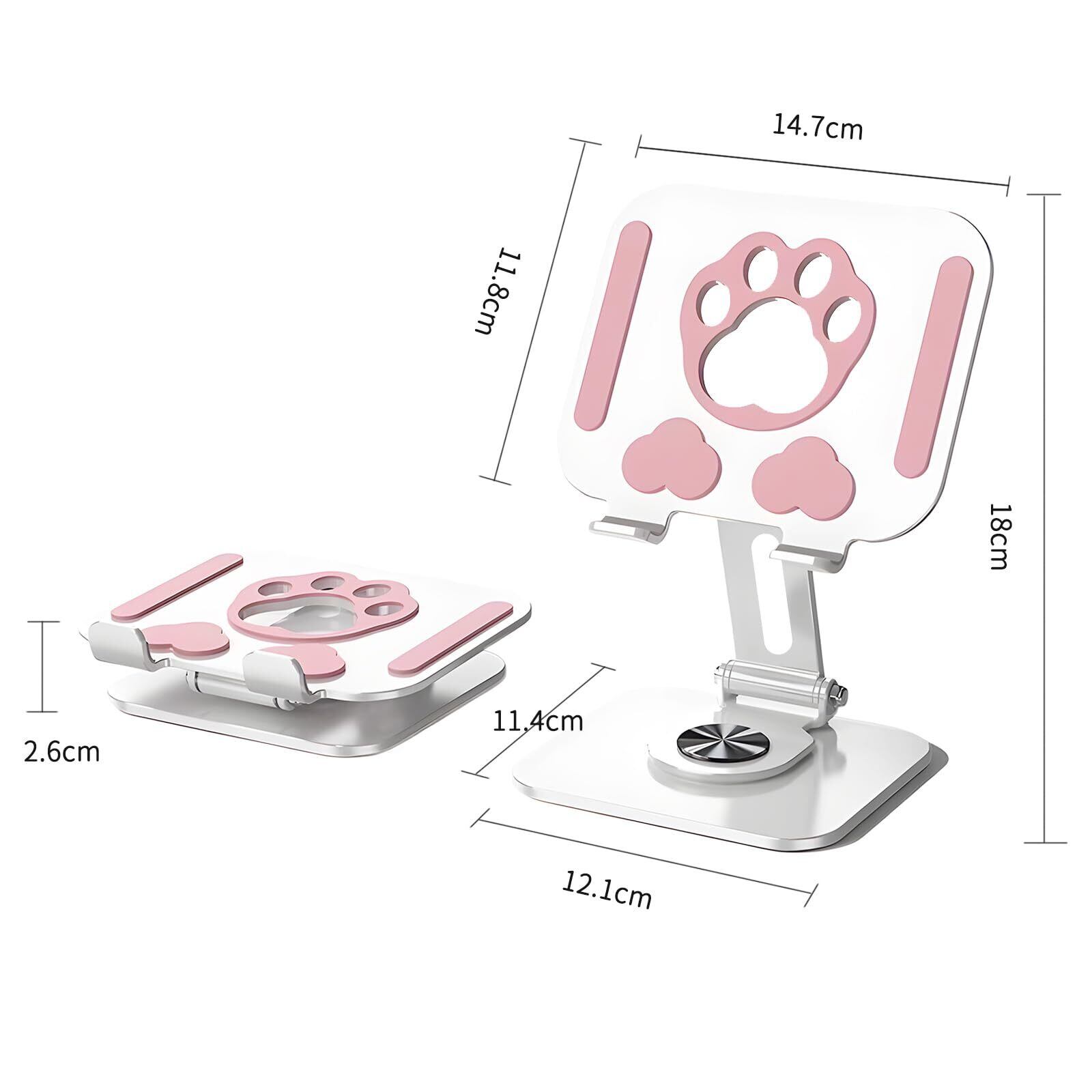 【新着商品】【Seorsok】タブレットスタンド 卓上 折りたたみ ipadスタンド 360度回転式 中空設計充電スタンド 滑り止め 持ち運び 横/縦置き スマホ置き Kindle置き ipad置き タブレット置き 放熱対策 高さ角度調整可能 猫,ピンクとグレー
