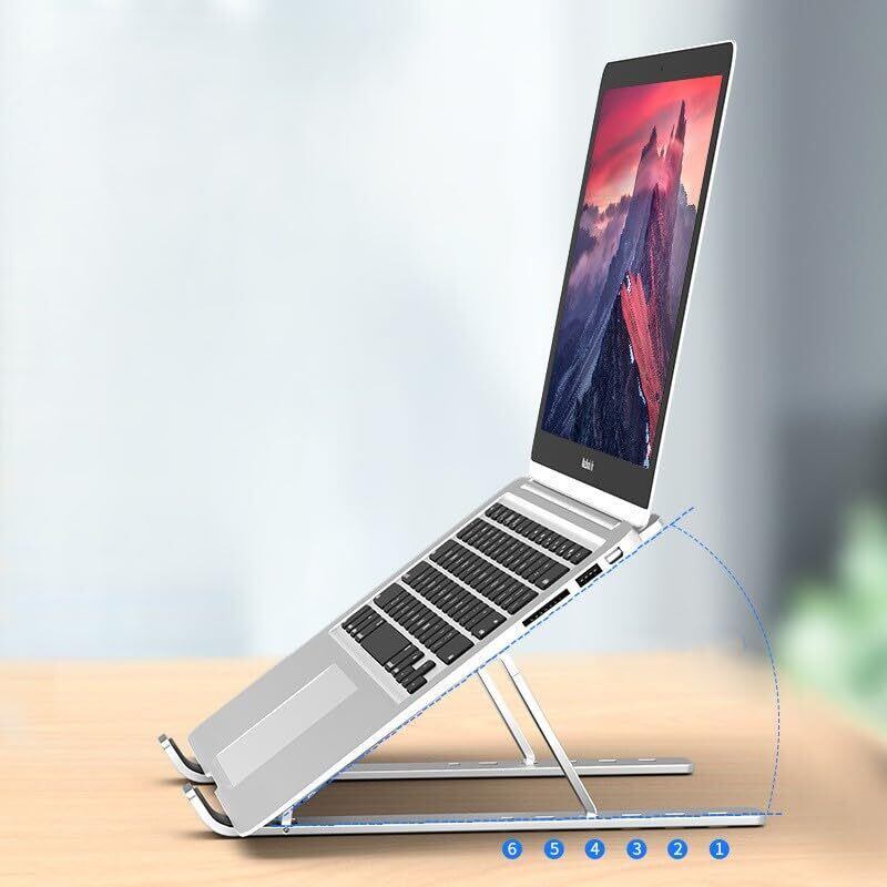 【特価セール】[Ciel Moon] ノートパソコンスタンド 卓上 【アルミ合金製・最大15KG耐荷】 パソコンスタンド 人間工学 7段階高さ&角度調整可能 姿勢改善 安定性 持ち運び便利 pcスタンド 軽量 ノートpc スタンド 折り畳み式 腰痛&猫背&肩こり解消 滑り止め 放熱性 省スペース パソコン PC MacBook ラップトップ iPad タブレット 在宅勤務