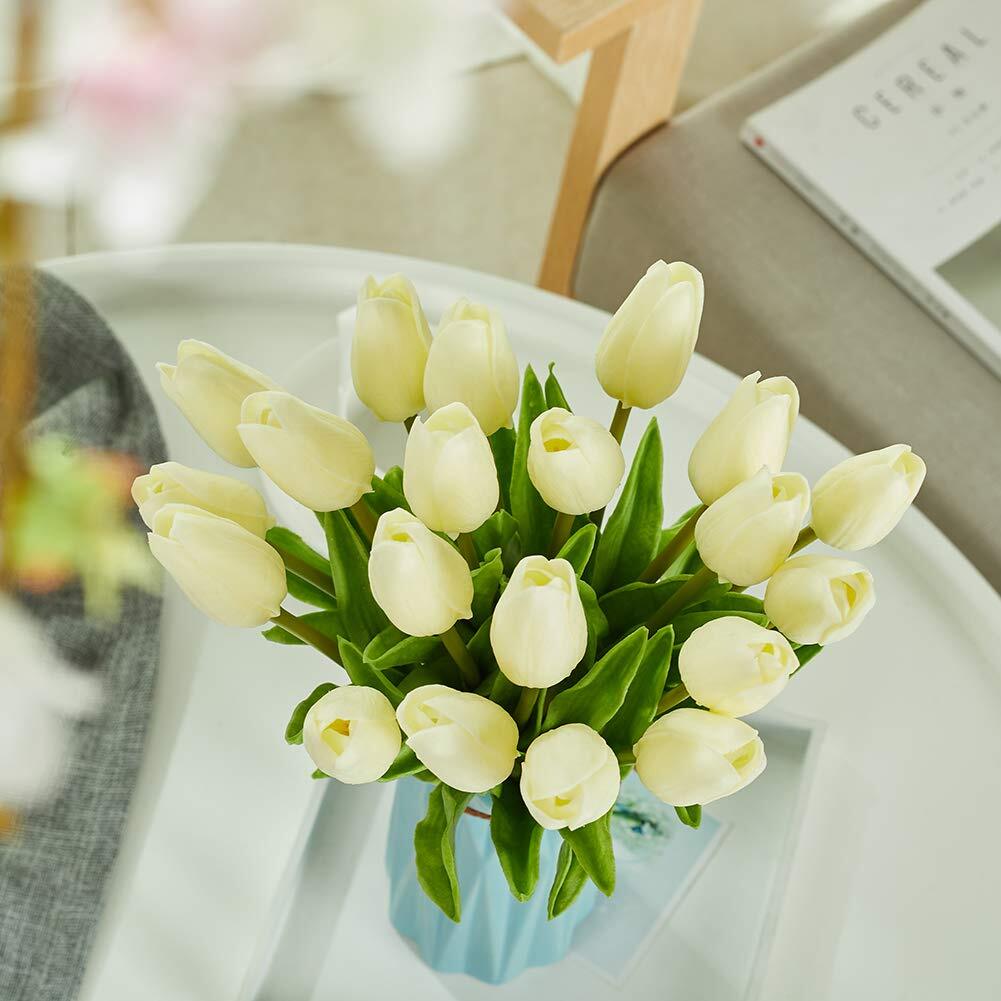 造花 枯れない花 チューリップ 造花 インテリア ギフト 大切な人へ感謝の気持ちを伝える 花束 インテリア造花 アートフラワー 20本 ホワイト 家、事務所、店、喫茶店、結婚式、パーティーなど様々の応用場所