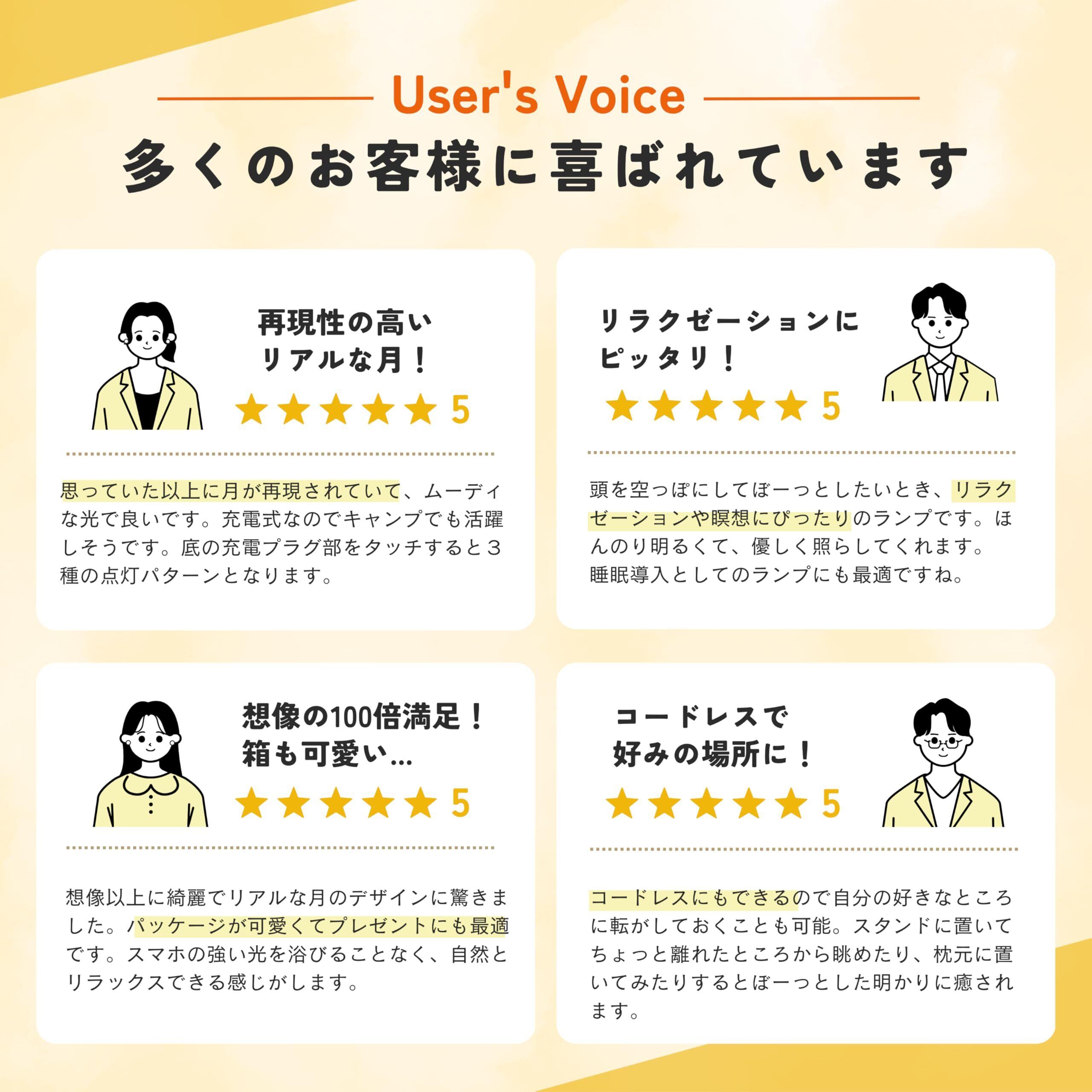 【オシャレなデザイン】 ・高精度な3Dプリント技術により、リアルな月面のクレーターや質感を一体成型で再現。 ・繋ぎ目がなく、底面の充電口は目立たないデザインで、インテリアとして洗練された雰囲気を演出。 ・柔らかな光で目にも優しく、長時間使用しても発熱しないため、お子様にも安心して使用可能。