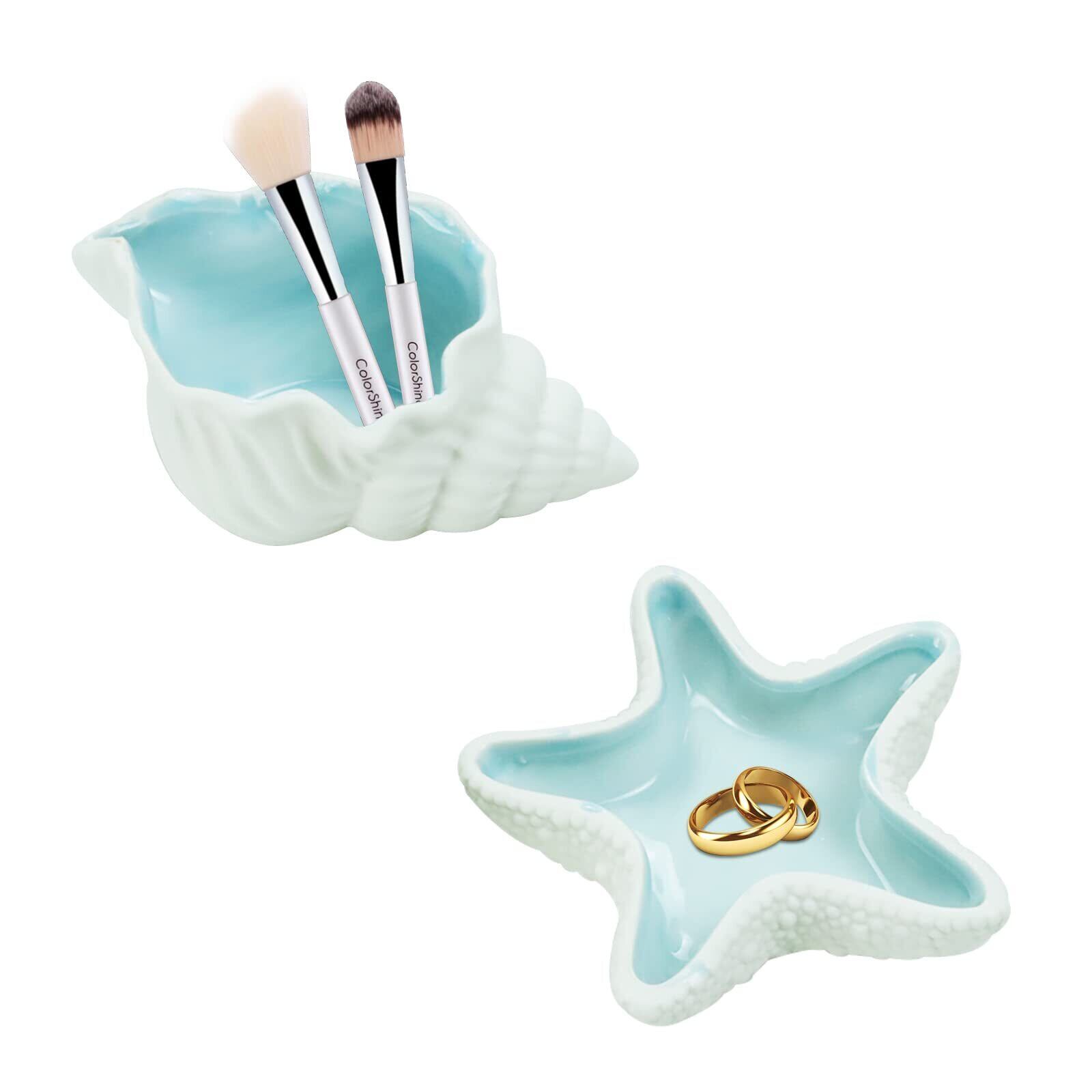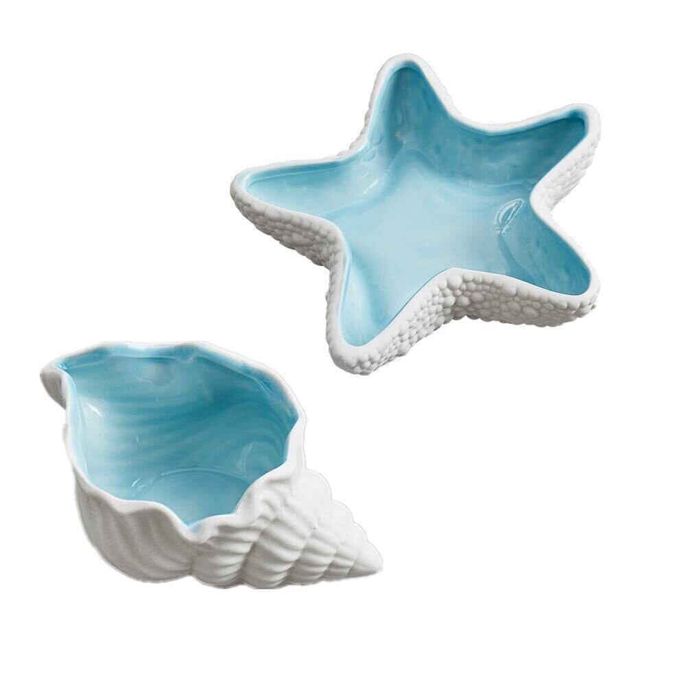 siawadeky アクセサリートレイ 2個入 ヒトデ サザエ 貝殻の形 アクセサリー収納 小物入れ ジュエリー収納 ジュエリートレイ おしゃれ 西海岸風 インテリア 玄関 置物 陶器 工芸品 ピアス 指輪 ブレスレット キーの収納