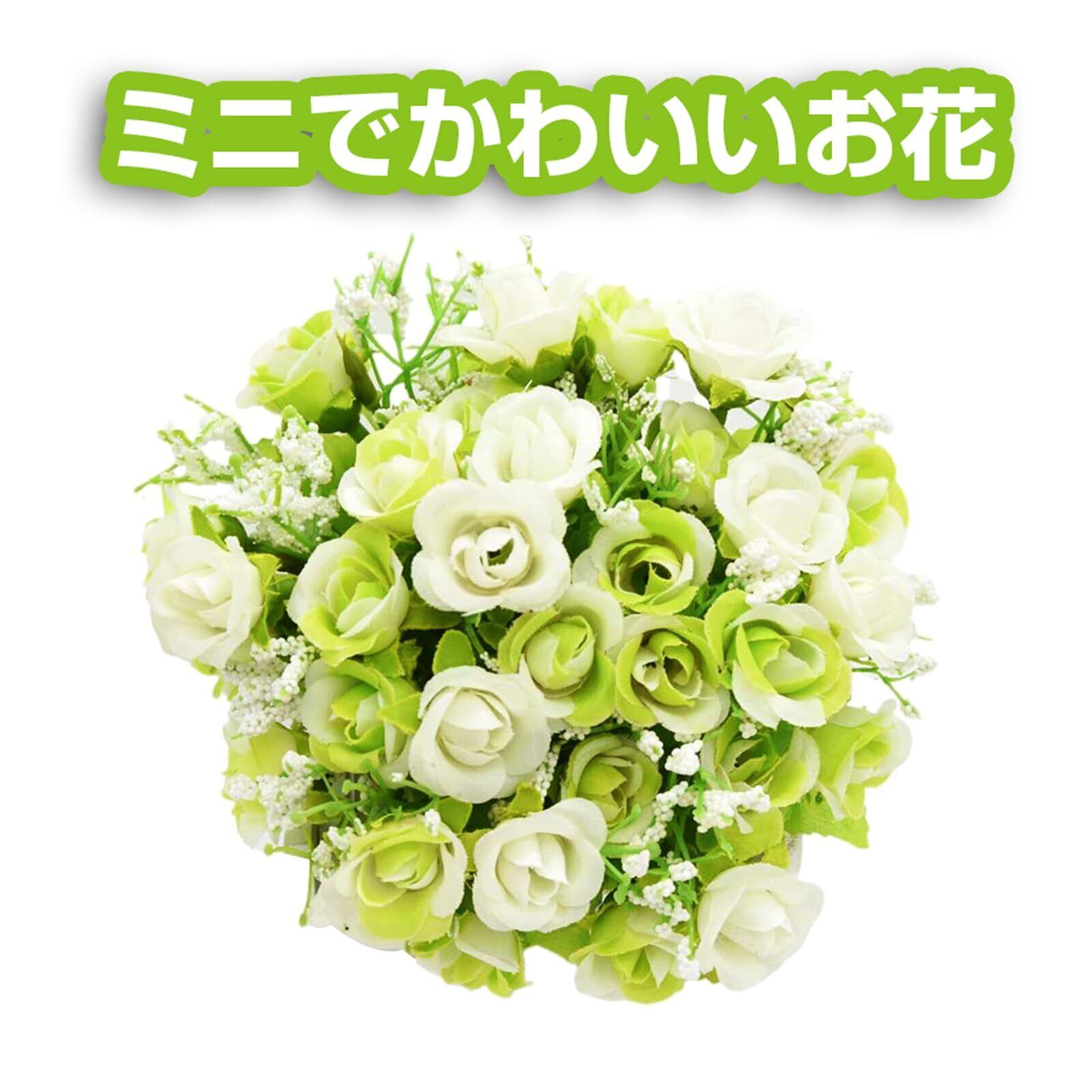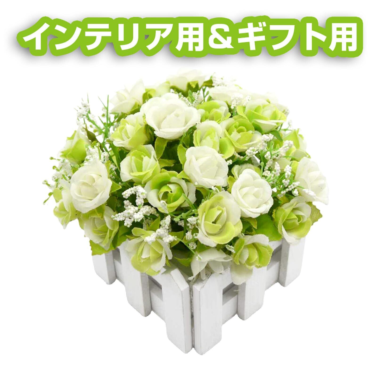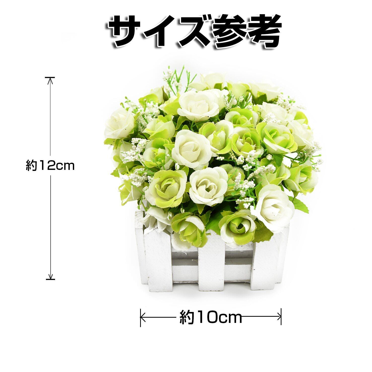 BEADY ミニダイヤーバラ 人工観葉植物 造花 光触媒 フェイクグリーン インテリア ギフト お祝い (花柵(ホワイト), グリーン&ホワイト)