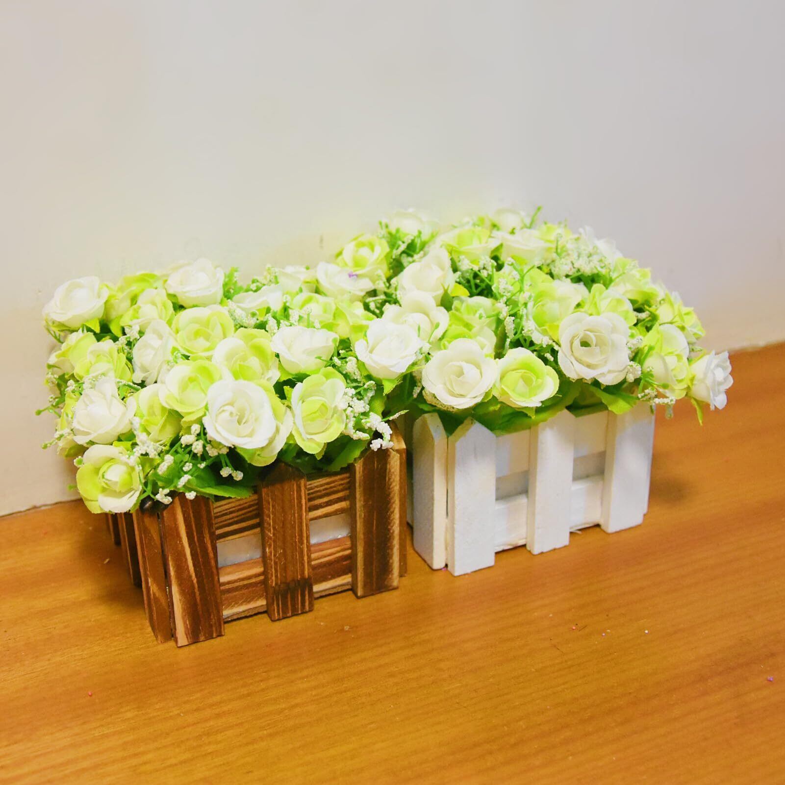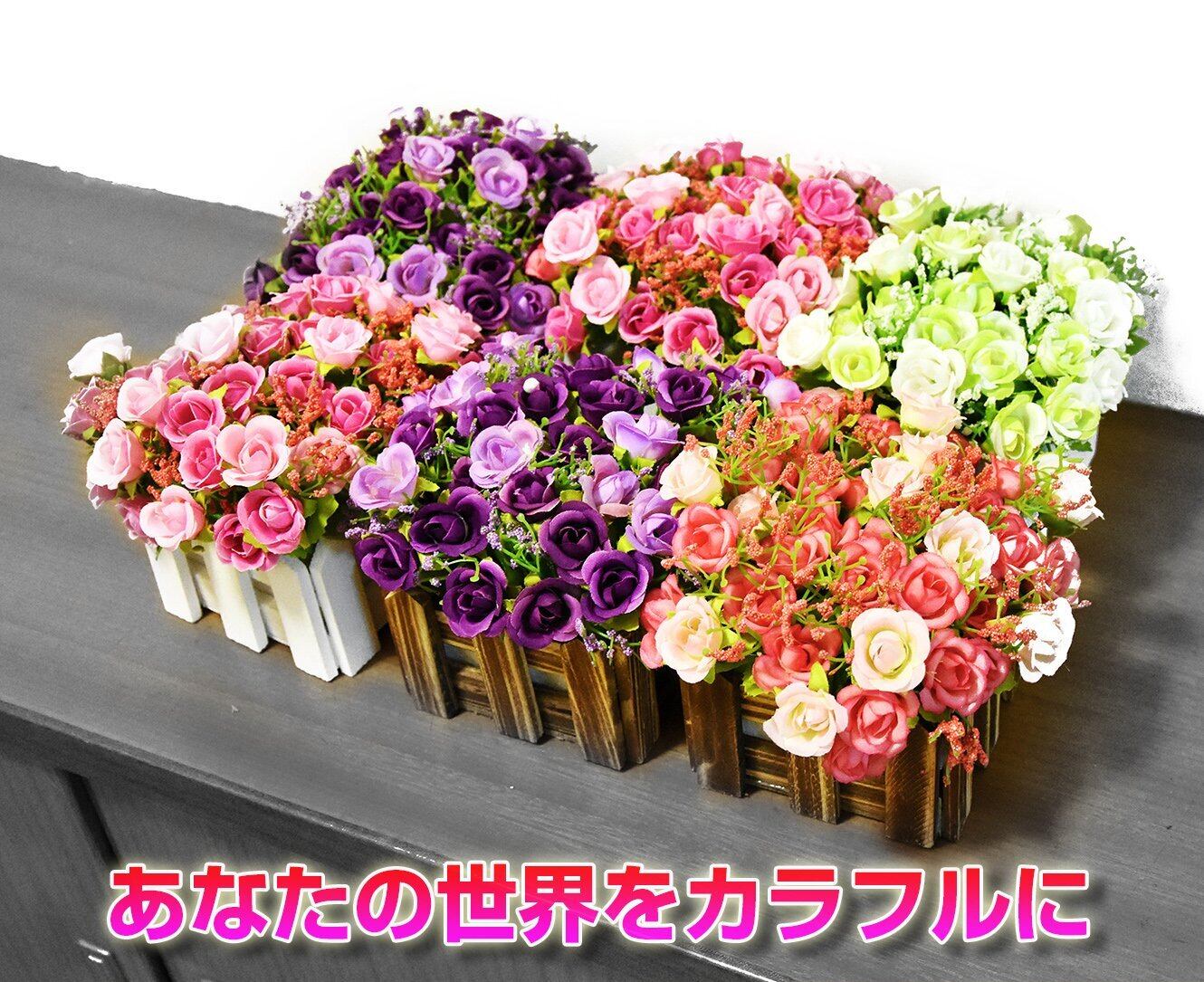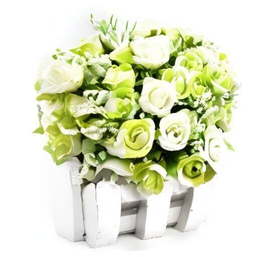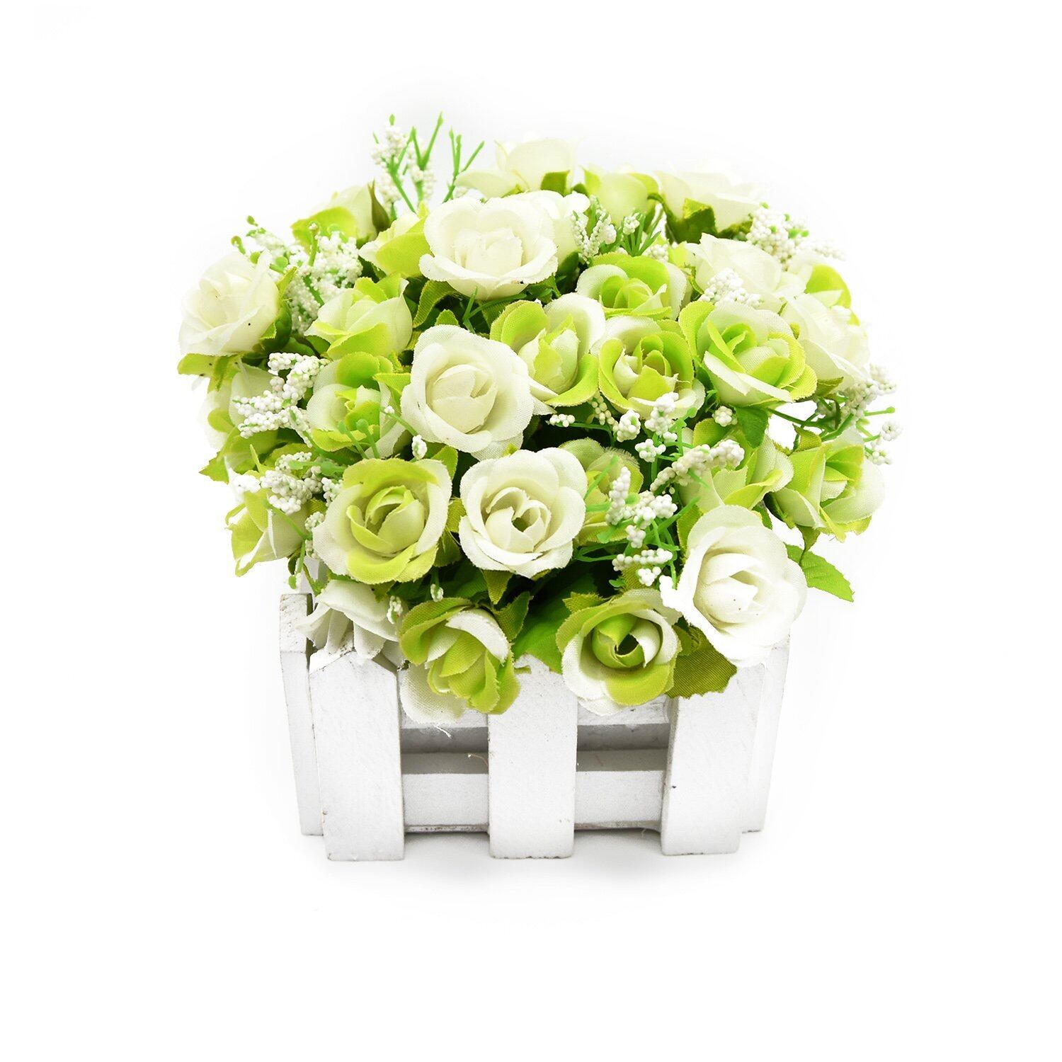 BEADY ミニダイヤーバラ 人工観葉植物 造花 光触媒 フェイクグリーン インテリア ギフト お祝い (花柵(ホワイト), グリーン&ホワイト)