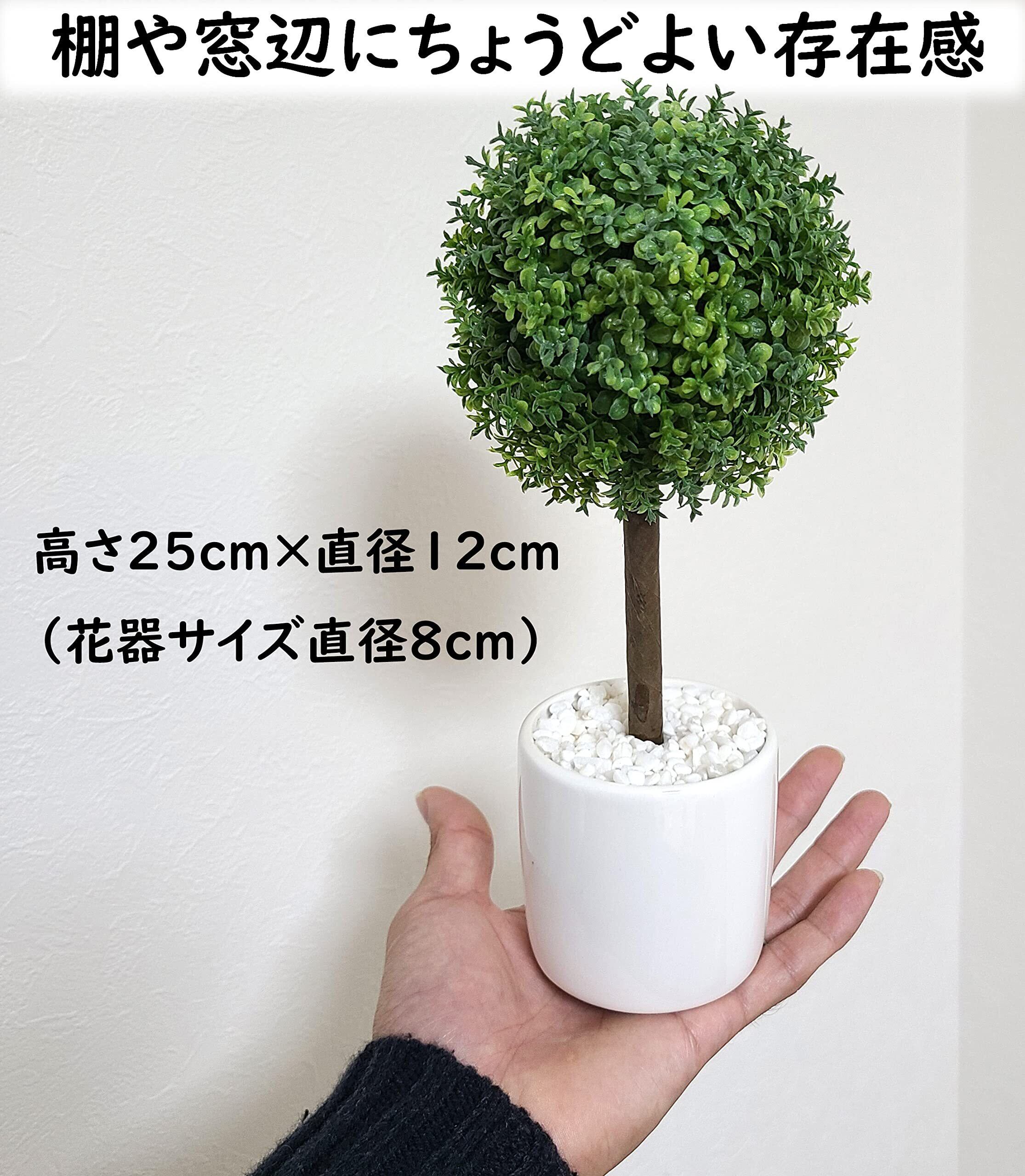 インテリアグリーン 観葉植物 フェイク ミニ 人工 造花 白 鉢付き 光触媒 消臭 除菌 日本製 おしゃれ トピアリーボール (円満の木) 高さ25cm×直径12cm(花器サイズ直径8cm)