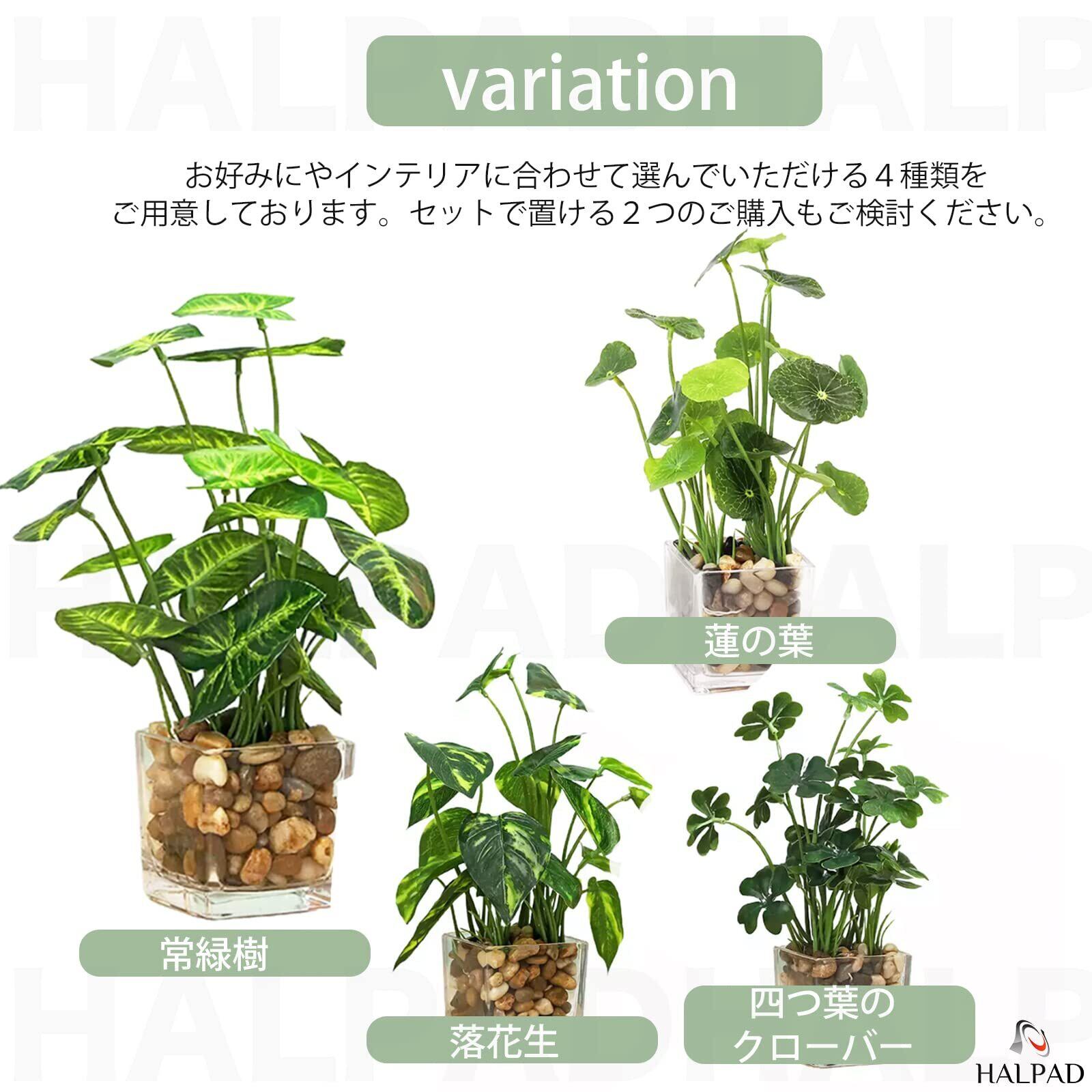 【様々な種類】があります。四葉のクローバー、万年青、常緑樹、落花生、蓮の葉などをご用意しているので用途にあった観葉植物を選択することでおしゃれなインテリアになります。