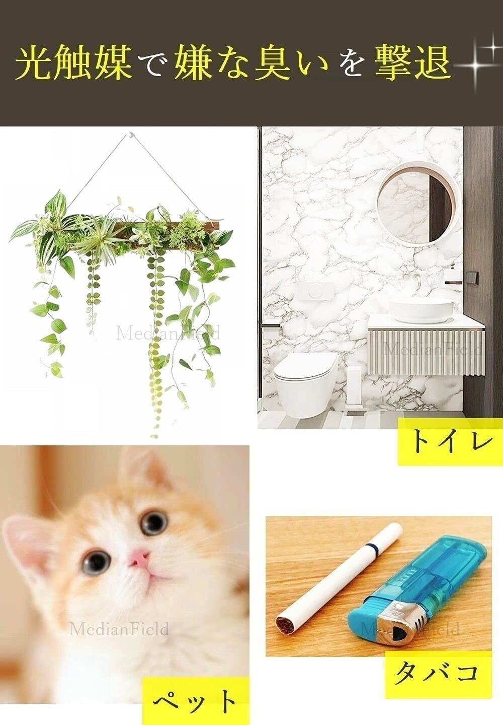【光触媒で消臭&抗菌!】「抗菌」「消臭」「有害物質の除去」という3つの作用により、光触媒が空気洗浄機のような働きをしてお部屋の空気をきれいに保ちます。 光触媒は太陽や照明・LEDなどの光を利用して、臭いの成分や有害物質(ホルムアルデヒド等)を分解し、ウィルスや菌などを不活性化します。