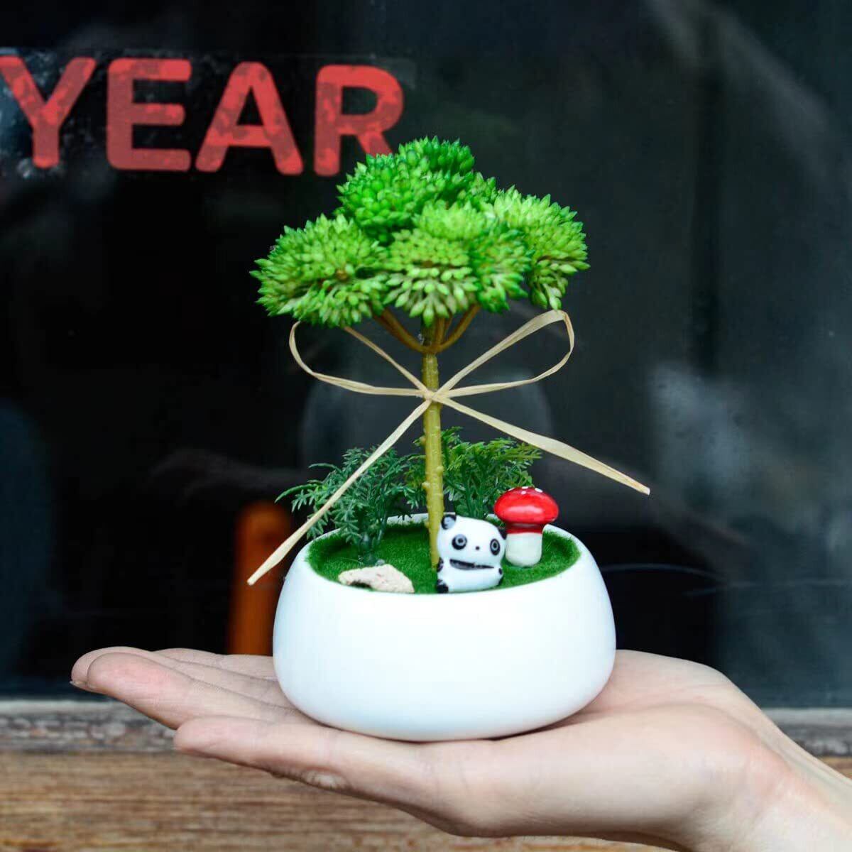 ミニ観葉植物 フェイクグリーン光触媒 人工観葉植物 パンダ 招き猫 飾り 消臭 抗菌 卓上 かわいい インテリア フェイク おしゃれ 造花 (パンダ-A)