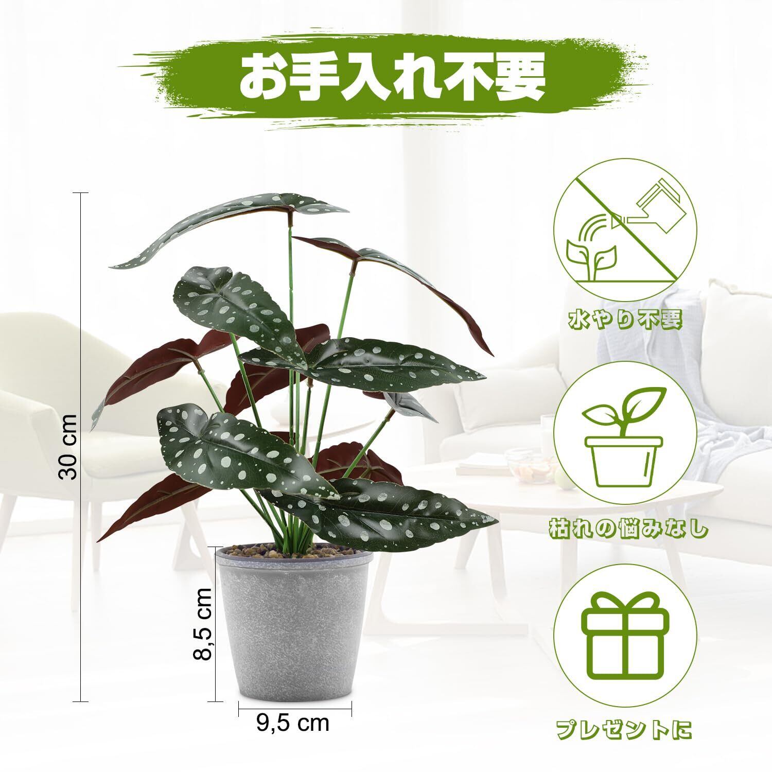 人工観葉植物 フェイクグリーン ベゴニア 2個セット 高さ30㎝ 造花 インテリア テーブル 玄関 窓側 リビング 棚 オフィス 飾り 葉っぱ ギフト