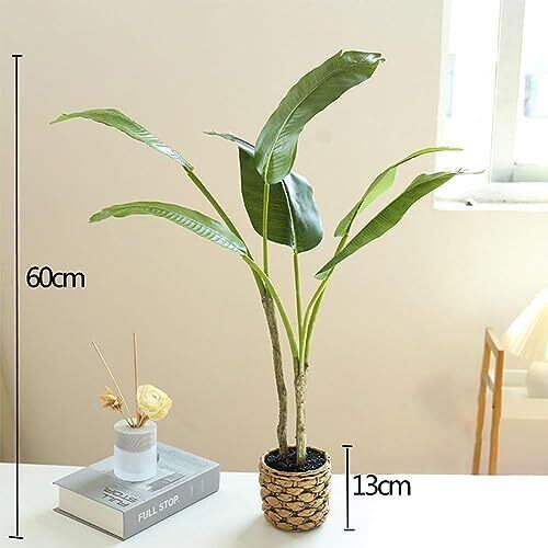 qinhome大型 人工観葉植物 旅人木 熱帯観葉樹 光触媒 フェイクグリーン フェイク 高さ65CM 簡単世話いらず 陶器鉢 鉢は取り外し不可 インテリア 屋内 リビング オフィス 空気清浄 (旅人木)